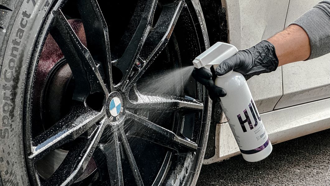 Určite ste už videli čističe kolies, ktoré sa premenia na červenú farbu pri reakcii s kovom. Hjul je ale iný! Stjärnagloss Hjul nie je len tak obyčajný odstraňovač vzdušnej hrdze. Ide o silnejšiu receptúru s obsahom mydla, ktorá odstráni bežnú cestnú špinu a ďalej obsahuje aktívne zložky, ktoré vedia ľahko odstrániť železité brzdové zvyšky. Jeho zloženie obsahuje čistiace látky na odstránenie akejkoľvek špiny, dokonca aj častíc asfaltu a téru. Jedným prípravkom teda dokážete kolesá kompletne vyčistiť a dekontaminovať. Prípravok je pH neutrálny, možno ho teda bez problémov použiť aj na ošetrené kolesá (po použití je nutné dôkladne opláchnuť vodou). Stjärnagloss Hjul možno použiť samozrejme aj na karosérii ako odstraňovač vzdušnej hrdze. Pri karosérii odporúčame nechať pôsobiť len krátku dobu a potom prípravok dôkladne spláchnuť tlakom vody.