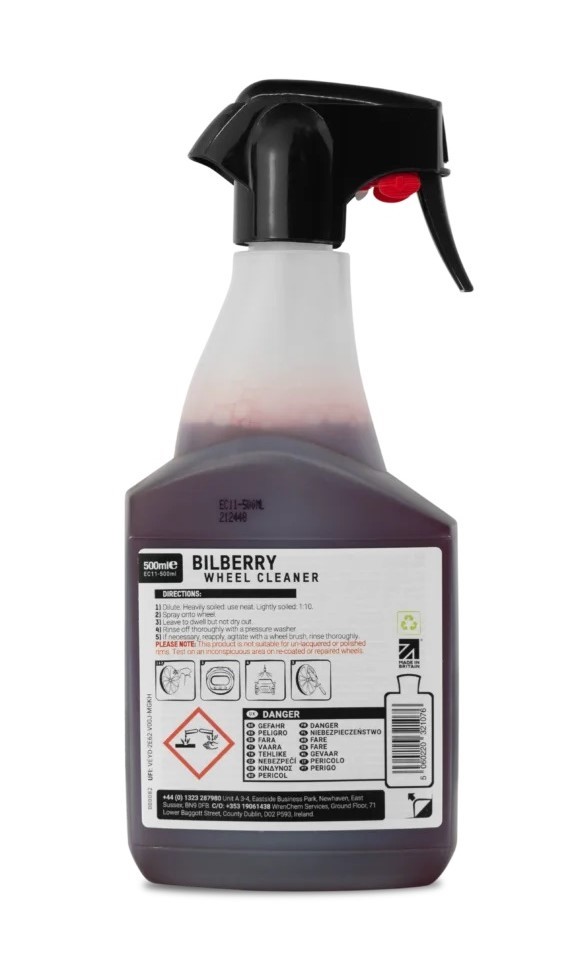 Bilberry Wheel Cleaner je alkalický čistič kolies, ktorý je mimoriadne účinný pri odstraňovaní špiny zo všetkých druhov kolies. Metóda postreku a následné opláchnutie umožňuje jednoduché čistenie, ktoré s trochou času odstráni ľahko zapečený brzdový prach. Prípravok je možné riediť a miera riedenia je veľmi flexibilná, takže Bilberry Wheel Cleaner je možné použiť čistý, alebo ho je možné riediť až v pomere 1:10, aby vyhovoval danej úlohe a napriek tomu fungoval. Veľké plus je, že ide o produkt úplne bez kyselín, ktorý je možné bezpečne použiť na lakované aj nelakovaná kolesá.