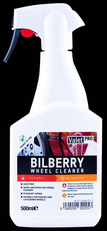 Bilberry Wheel Cleaner je čistič kolies, ktorý neobsahuje kyselinu. Tento alkalický čistič kolies vie odstrániť špinu veľmi dobre. Stačí ho nastriekať a opláchnuť. S trochou trpezlivosti a snahy odstráni mierne pripečený brzdový spad. Bilberry Wheel Cleaner poskytuje skvelý výkon za viac ako dostupnú cenu. Pomáha navyše odstrániť staré vrstvy vosku, takže sa dá použiť na kompletnú údržbu vozidla.