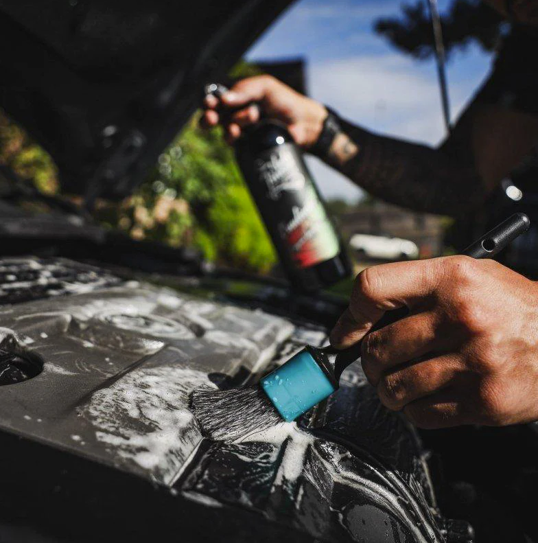 - Následne detailingovým štetcom uvoľnite nečistoty (používajte chemicky odolný štetec).