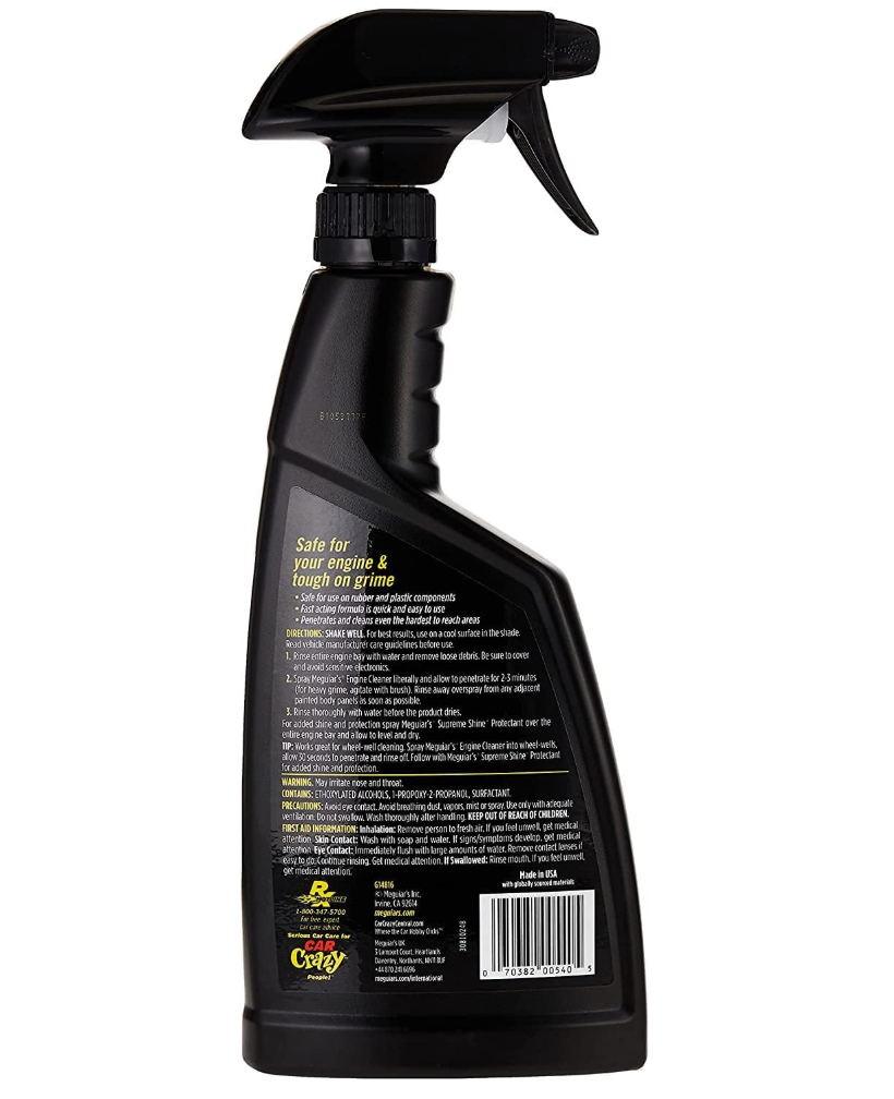 Meguiar's Engine Cleaner je navrhnutý na rýchle a jednoduché umývanie motora. Vďaka svojmu zloženiu rýchlo a bezpečne odstráni všetku špinu a mastnotu. Tento výrobok môžete bezpečne použiť aj na umývanie plastov a gumových hadíc bez toho, aby došlo k poškodeniu ich povrchu.