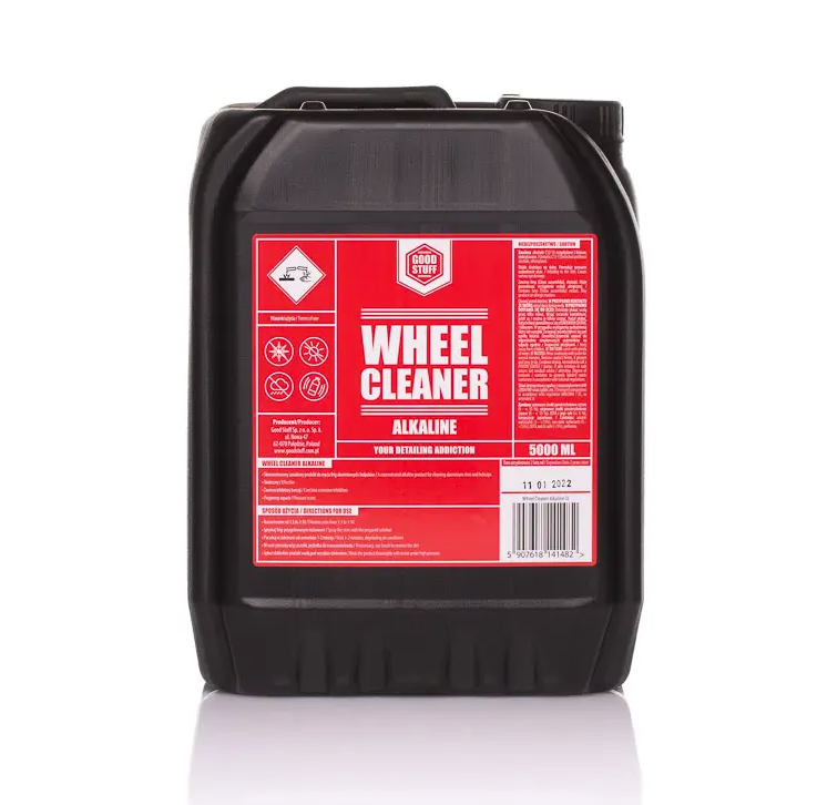 Good Stuff Wheel Cleaner Alkaline je alkalický čistič kolies s inhibítormi korózie na odstraňovanie nečistôt z hliníkových ráfikov a krytov kolies. Ide o koncentrát, ktorý sa dá riediť v pomere od 1:3 do 1:10. Je to skvelá alternatíva ku všetkým odstraňovačom vzdušnej hrdze a kyslým čističom. Čistiace vlastnosti tohto prípravku predčia klasické odstraňovače vzdušnej hrdze. Navyše so silnými penivými vlastnosťami poskytuje dobrý sklz pri práci. Je obohatený o príjemnú vôňu Coca Coly.