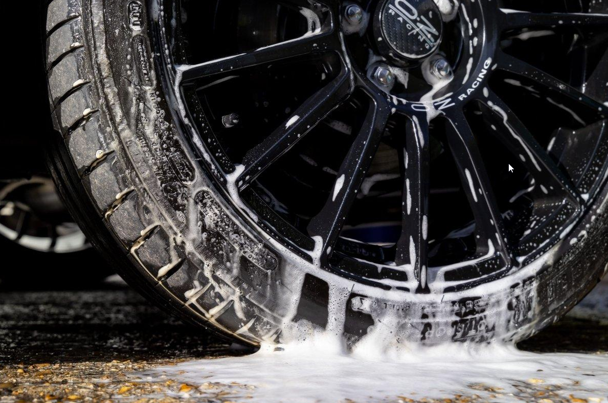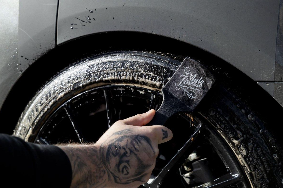 - Pomocou detailingového štetca alebo kefy Rubber Scrubber dôkladne vyčistite pneumatiku.