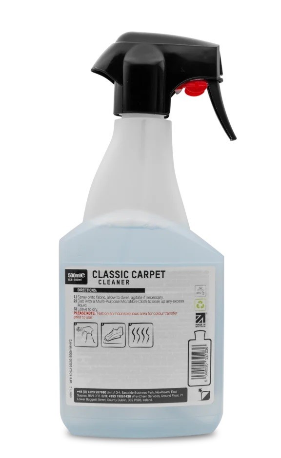Classic Carpet Cleaner je čistiaci prostriedok na interiér a čalúnenie v automobile, ktorý je navrhnutý tak, aby rozdrvil tuhé znečistenia z látky. To znamená, že nečistoty pri čistení ľahko skĺzavajú z tkaniny, čo napomáha čisteniu. Tento produkt je ideálny pre rýchle a dôkladné čistenie čalúnenia a kobercov. Riedenie sa u tohto prípravku líši: 500 ml fľaše s rozprašovačom sú už zriedené, takže stačí nastriekať a zotrieť, zatiaľ čo kanistre s objemom 1 l a 5 l nie sú nariedené a je možné ich riediť až v pomere 1:20 na použitie ručne, alebo 1:80 v stroji na tepovanie kobercov.