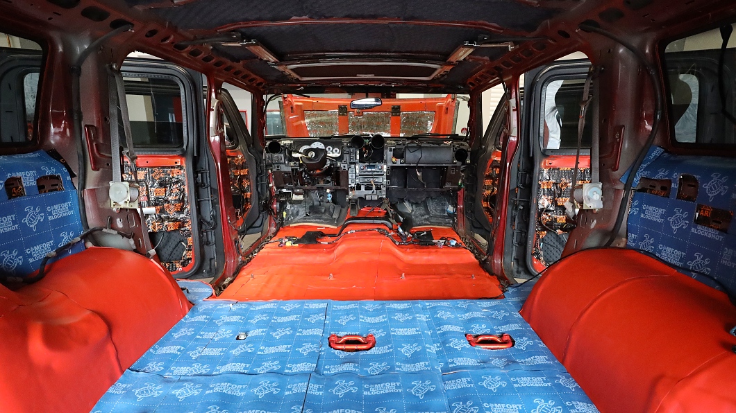 Majiteľ spoločnosti Egmont Garage, ktorá sa zaoberá zákazkovou úpravou vozidiel a s ktorou spolupracujeme na niekoľkých projektoch, nás oslovil s náročnou úlohou. Konkrétne išlo o kompletné odhlučnenie interiéru vozidla Hummer H2 špičkovými materiálmi Comfortmat a to je výzva, ktorú sme nemohli odmietnuť. Trúfame si navyše odhadovať, že do niečoho takého sa v našich končinách ešte nikto nepustil, takže s o to väčšou vervou sme sa do toho pustili. A aké boli požiadavky? Zníženie nielen bežného cestného hluku v interiéri, ale samozrejme aj hluku od motora, pneumatík, ladených výfukov a najmä vrzajúcích plastov interiéru.