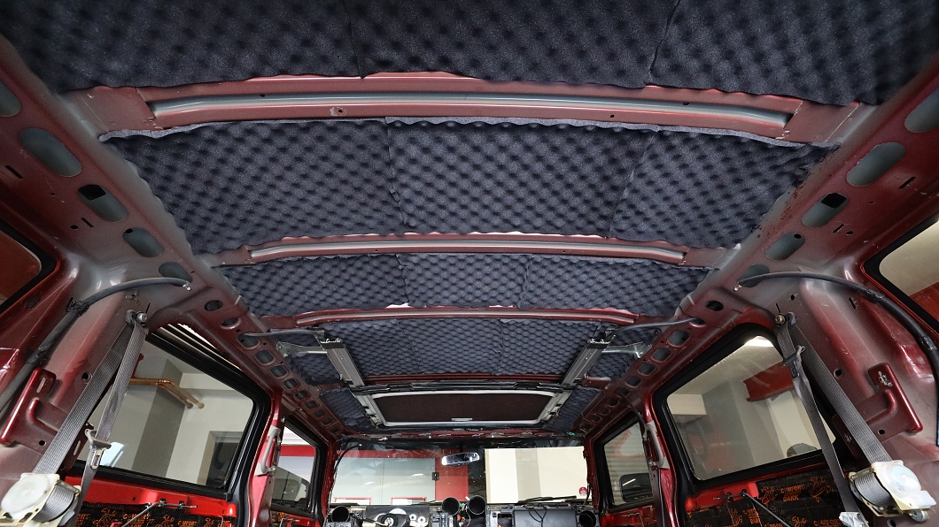 Vynechať nemôžeme ani strechu, ktorej odhlučnenie prináša niekoľko zaujímavých benefitov. Okrem zamedzenia prenikania bežného cestného a aerodynamického hluku je to aj tepelná izolácia. Strechu v tomto prípade odhlučňujeme celkom v troch vrstvách. Tou prvou je tradične antivibračný materiál, ktorý spevní tenký plech strechy a jeho účinok spoznáte napríklad aj v daždi, pretože takmer eliminuje akýkoľvek hluk od dažďových kvapiek, ktoré za jazdy takmer nepočujete. Na strechu používame antivibračný materiál Comfortmat Dark D2 s veľmi nízkou hmotnosťou a hrúbkou 2,3 mm. Druhú vrstvu tvorí špeciálny membránový Comfortmat Skyline, ktorý je určený práve na odhlučnenie strechy. Zároveň ide o najľahší zvukovo izolačný materiál s protihlukovou membránou na svete s hmotnosťou 2,8 Kg na 1 m². Aj vďaka tejto membráne poskytuje Skyline vysokú úroveň zvukovej izolácie až -25 dB. Okrem toho Skyline poskytuje aj tepelne izolačnú funkciu, čo oceníte najmä v lete. V horúcich dňoch sa cez strechu nedostane toľko tepla a v aute dlhšie vydržia chladnejšie teploty z klimatizácie. V zime je efekt opačný a ak máte odhlučnené celé auto materiálmi Comfortmat, z interiéru vozidla neuniká teplo. Ako tretiu vrstvu aplikujeme ešte polyuretánovú penu Comfortmat Soft Wave. Táto pena totiž dokáže pohltiť hluk, ktorý by bol schopný prekonať prvé dve vrstvy odhlučnenia a zároveň vyplní priestor medzi strechou a stropnicou. Vlnitý povrch zamedzí šíreniu hluku po rovnom povrchu strechy a pohltí aj ďalšie zvuky ako škrípanie alebo chrastenie stropnice, prípadne kabeláže osvetlenia, a pod. Soft Wave disponuje tvarovou pamäťou a je veľmi flexibilný. Aj napriek hrúbke 15 mm materiál môžete aplikovať takmer do všetkých priestorov, pretože sa dokáže stlačiť na len jeden milimeter. Veľkou výhodou tohto materiálu je okrem excelentnej schopnosti absorbcie hluku aj jeho hmotnosť, ktorá je iba 0,6 kg na 1 m².