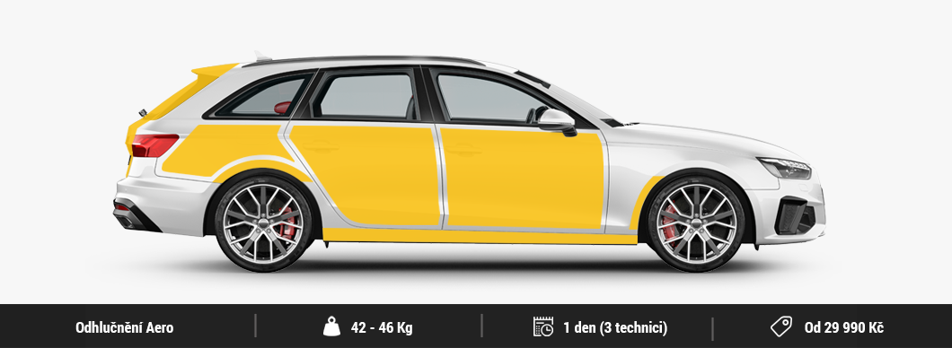 Cena za balíček odhlučnenia Aero začína na 1 299 € vr. DPH a zahŕňa kompletný materiál aj prácu. Uvedená cena zodpovedá stredne veľkým automobilom, ako je Kia Ceed alebo VW Golf. Finálna cena sa odvíja od množstva použitých materiálov a času potrebného na montáž, a preto je pri menších či väčších vozidlách odlišná.