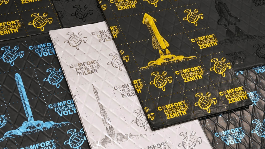 Nové vibroakustické materiály Comfortmat Aerospace všetky pohromade – Volt, Pulsar, Zenith a Galaxy.