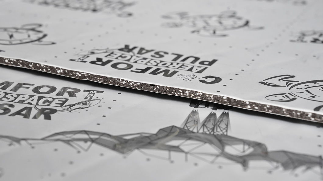 Vibroakustické materiály Comfortmat Aerospace využívajú unikátnu konštrukciu, ktorá v jedinej aplikácii spája výrazný antivibračný účinok so zvukovou izoláciou. Základom je vibroakustická vrstva so spenenými elastickými granulami s veľmi nízkou hustotou. Táto kombinácia dvoch odlišných akustických prostredí – ťažkej matrice a ľahkých, pružných granúl – zvyšuje schopnosť pohlcovať a rozptyľovať vibrácie naprieč širokým frekvenčným spektrom. Táto štruktúra zároveň prispieva k zlepšeniu zvukovej izolácie, a to aj v oblasti kľúčových nízkych frekvencií. Vybrané modely sú navyše doplnené o elastickú membránu, ktorá výrazne zvyšuje útlm vzdušného hluku. Vrchnú vrstvu tvorí špeciálna hliníková fólia Scale One s hrúbkou 100 mikrónov, ktorá zaisťuje rozmerovú stabilitu, zvyšuje tuhosť povrchu a chráni materiál pri manipulácii aj dlhodobej prevádzke.