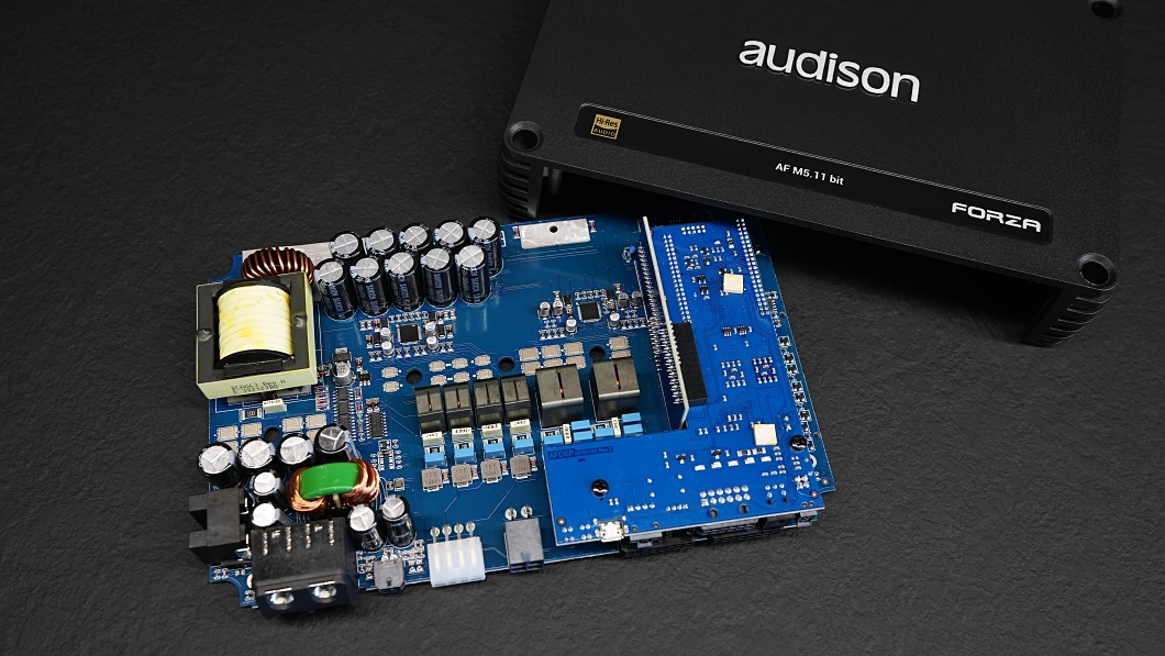 Obvodová doska je skvele organizovaná a plná vysoko kvalitných súčiastok. Všeobecne ide o veľmi zložitý zosilňovač, ktorého spracovanie vzbudzuje rešpekt k inžinierom Audisonu. Čo sa týka použitých komponentov, tak Forza využíva na vstupnej strane osem 1000 mikrofaradových, 35 voltových uzáverov a veľkú indukčnú cievku s keramickým jadrom, aby sa spínací šum nevracal späť pozdĺž napájacích káblov. Výstup zdroja má osem 1000 mikrofaradových 50 voltových uzáverov na skladovanie energie. Výstupné spínacie zariadenia sú všetky MOSFET. Kanály 1-4 používajú štvorkanálový ovládač IRS2093M triedy D a kanál 5 dvojkanálový ovládač IRS2052M. Výstupy sú DirectFET IRF6645 a IRF6668. Digitálna časť pôsobí rovnako impozantne vďaka zvoleným komponentom v podaní 16kanálového DAC ADAU1966, troch 4kanálových ADAU1978 ADC a samotného audio procesora ADAU1467 a mikrokontroléra z rodiny STM32 na spracovanie, smerovanie a spracovanie audio signálu. V analógovej časti vládnu veľmi kvalitné operačné zosilňovače OPA1679.
