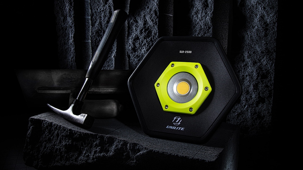 - Prenosné pracovné svetlo Unilite SLR-3000 - nabíjacie veľké LED svietidlo Unilite SLR-3000 vyžaruje silné rozptýlené biele svetlo so svetelným výkonom 3000 lúmenov. Pre prevádzku sú použité dve tlačidlá, ktoré sú umiestnené vzadu. Ľavé tlačidlo rozsvieti svetlo a pravé tlačidlo prepína medzi 100% a 50% výstupom pri stlačení. Ukazovateľ napájania batérie je umiestnený vedľa tlačidiel a má štyri LED diódy pre zobrazenie zostávajúcej energie. Použitím lítiovo-iontovej dobíjacej batérie 7,4 V 6600 mAh, ktorá je dobíjaná priloženým sieťovým adaptérom, má SLR-3000 pri najvyššom nastavení doby prevádzky až 3 hodiny. Batéria môže byť vybratá zo svietidla pre ľahšie nabíjanie a tiež prenositeľnosť, pretože slúži aj ako powerbanka pre nabíjanie externých zariadení.