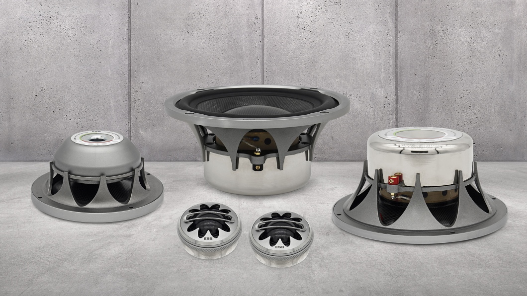 Reproduktory ESB radu 9000 (Novemila) patria k technologicky najvyspelejším reproduktorom do auta, aké boli kedy vyrobené. A tiež k tým najelegantnejším! Technológia a dizajn sa spájajú v novej a neobvyklej estetike a to vďaka výnimočnému kvetinovému tvaru okolo membrány výškového reproduktora a tiež na košoch basového a stredového reproduktora. Tento luxusný dizajn však nevznikol iba z estetického hľadiska. Je výrazom inovácie, ktorá umožní, aby akustický lom na okrajoch výškových reproduktorov bol menej výrazný a prispôsobí sa designu reproduktorov. Analógiu môžete nájsť v nových motoroch Rolls-Royce pre najmodernejšie lietadlá, ktoré disponujú rovnakým tvarom na zadnej hrane. Presne tam, kde vychádza vzduch a tvorí sa hlavná turbulencia. S novou konštrukciou tieto motory dosiahli veľké výhody ako je zníženie hluku v kabíne o 10 dB a zároveň zníženie spotreby paliva o 10%. Nejde však len o náhodnú podobnosť. Konštrukcia high-end reproduktorov ESB aj motorov Rolls-Royce vychádzajú z rovnakého predpokladu a to znížiť nežiaduce vlastnosti zvuku na okraji reproduktorov, respektíve motorov. Pravdepodobne si najskôr všimnete krásny dizajn výškového reproduktora. Nejde však iba o vyjadrenie talianskej estetiky, ale má svoje opodstatnenie. „Butterfly design“ umožňuje dosiahnutie dokonalej rozmerovej stability a zaisťuje perfektné spojenie všetkých dielov s veľmi nízkymi toleranciami, čo znižuje skreslenie a zlepšuje výkon. Špeciálny tvar prednej časti výškového reproduktora vylepšuje reprodukciu do strán, znižuje odraz od skiel automobilu a vytvára ideálne podmienky pre širší uhol počúvania. Membrána je vyrobená z ľahkého polopriehľadného hodvábu, ktorý je dokonalou kombináciou ľahkosti a pevnosti a v dnešnej dobe je pravdepodobne tým najvhodnejším materiálom pre extrémne realistickú hudobnú reprodukciu. Pozadu nezostáva ani prekrásny kôš stredobasových a stredových reproduktorov. Ten je vyrobený zo zliatiny hliníka, vďaka čomu je extrémne tuhý a zaistí maximálnu stabilitu pre všetky pohyblivé časti reproduktora. Kôš je však tiež veľmi "otvorený", aby umožnil bezproblémový priechod tlaku zo zadnej strany membrány. To zaisťuje rovnomerný tlak na obe strany membrány a znižuje deformácie a skreslenia. Nádherná membrána reproduktorov je vyrobená z pravých tkaných karbónových vlákien, ktoré sú ešte vystužené epoxovanou živicou. Špeciálny dizajn zavesenia membrány z čistého NBR je dokonalým a plynulým pokračovaním tvaru membrány, ktorá nadväzuje na design koša. Perfektné spojenie eliminuje nežiaduce rezonancie a deformácie membrány. Dokonca aj zvukové vlny vo vnútri membrány sa rozptýlia oveľa lepšie ako v prípade tradičného zavesenia.