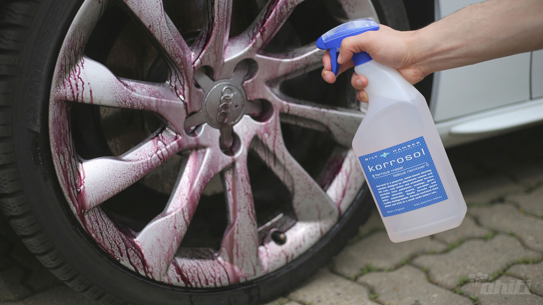 Začneme tou najšpinavšou časťou auta a to sú celkom nepochybne kolesá. Vždy je lepšie umyť najprv práve kolesá, v prípade opačného postupu by sme totiž mohli zašpiniť už umytú karosériu. Či už nechávate na leto rovnaké disky a len vymeníte pneumatiky za letné, alebo auto kompletne prezujete, postup čistenia je totožný. Tento bod sa vás netýka, ak ste už kolesá určené na letnú sezónu perfektne vyčistili ihneď po prezutí. Predpokladám ale, že nie som sám, kto to odložil na jar. Ideálne je vyčistiť kolesá z vnútornej i vonkajšej strany, kým nie sú nasadené na aute. Najviac práce za nás urobí odstraňovač vzduchom roznášanej hrdze, ktorý skvele funguje aj ako čistič kolies. Odporúčame prípravok Bilt Hamber Korrosol, ktorý v litrovom balení vychádza cenovo najlepšie a zároveň patrí k tým najkvalitnejším prípravkom. Najprv kolesá opláchnite vodou a následne na ne nastriekajte tento prípravok. Čoskoro uvidíte reakciu, kedy sa železité čiastočky zafarbujú do červenej farby a všetka špina sa začne rozpúšťať. Pri silnejšom znečistení použite štetec na kolesá a po vyčistení kolesá opláchnite silným prúdom vody. Nepoužívajte prípravok na priamom slnku a nenechajte ho na kolesách samovoľne zaschnúť.