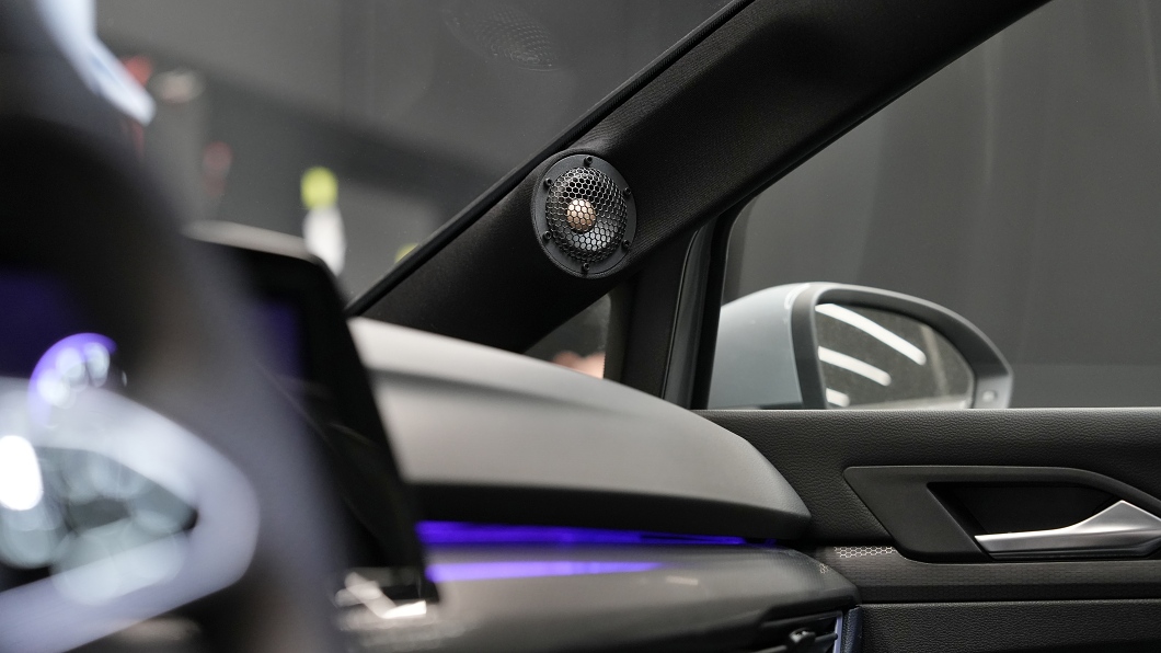 Z pohľadu kvality zvuku je stredové pásmo úplne zásadné. Práve tu vzniká väčšina hudobných informácií – vokály, farba nástrojov, ich prirodzenosť aj priestor. Bez kvalitne reprodukovaných stredov nebude znieť správne žiadne ozvučenie, bez ohľadu na ostatné komponenty. Ideálnym riešením je teda vždy trojpásmový systém so samostatným výškovým, stredovým a stredobasovým reproduktorom. V prípade Volkswagenu Golf 8 GTE však takéto riešenie naráža na zásadné limity. Interiér neponúka reálny priestor na inštaláciu stredových reproduktorov v akusticky správnej pozícii a plnohodnotné trojpásmo by navyše vyžadovalo šesťkanálový zosilňovač pre prednú scénu. V podmienkach tohto vozidla ide z hľadiska priestoru aj celkovej koncepcie o veľmi ťažko realizovateľný scenár.
