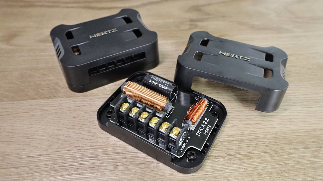 Balenie je prakticky totožné s radom Dieci. Dizajnovo podarený obal v kombinácii čiernej a oranžovej farby zobrazuje fotku reproduktorov, základný popis, parametre aj použité materiály a technológie. Vnútri sa ukrýva polystyrénová krabica, ktorá chráni reproduktory a príslušenstvo pred poškodením pri nešetrnom zaobchádzaní. Po rozbalení zbadáte hlavné komponenty a to stredobasové reproduktory s priemerom 165 mm s označením DPV 165.3, výškové reproduktory DPT 26.3 s kalotou s priemerom 26 mm a frekvenčné výhybky DPCX 2.3. Práve tie patria medzi ďalšie odlišnosti a sú dizajnovo veľmi podobné výhybkám z vyššieho radu Cento. S rozdielom čiernej farby a samozrejme zlatým logom Hertz. Tým však podobnosť s vyšším radom CK 165 končí, pretože vnútro výhybky bolo navrhnuté špeciálne pre rad DPK. Pre basový reproduktor je navrhnutá 6 dB/okt. dolný priepust založený na induktoroch z čistej medi a pre výškový reproduktor 12 dB/okt. vysokopriechodový filter s bimetalizáciou z polypropylénu a 100 V kondenzátor. Samozrejmosťou sú pozlátené termínály. Oproti radu Cento však nie je možnosť nastaviť úrovne výškového reproduktora. Pripomenieme, že klasický rad DSK disponuje iba základnými výhybkami, ktoré sú súčasťou kábla, takže u týchto nových reproduktorov ide o veľký posun vpred. V montážnom príslušenstve nájdete ešte skrutky, ktoré môžete využiť na inštaláciu, ďalej plechové držiaky na montáž výškových reproduktorov a tiež domčeky pre výškové reproduktory. Tie využijete, ak budete chcieť inštalovať výškové reproduktory napríklad na palubnú dosku. Všeobecne sú výškové reproduktory pomerne malých rozmerov a ešte sa nám nestalo, aby sa nedali bez problémov namontovať do originálneho umiestnenia v automobile. V balení nenájdete žiadne káble, tie je potrebné dokúpiť. Stredobasové reproduktory následne pripojíte pomocou fast-on konektorov.