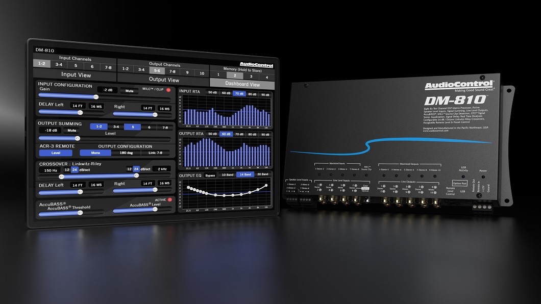 - AudioControl DM-810 - najvýkonnejší 10kanálový DSP procesor od AudioControl so všetkými dôležitými funkciami pre spracovanie signálu a jednoduchú integráciu na továrenský systém. Výbava obsahuje 8 x RCA vstup, 8 x Hi-level vstup, 1 x Toslink, 1 x koax alebo 10 x RCA výstup. Samozrejmosťou je v dnešnej dobe možnosť doplnenia Bluetooth modulu pre Hi-Res streamovanie hudby.
