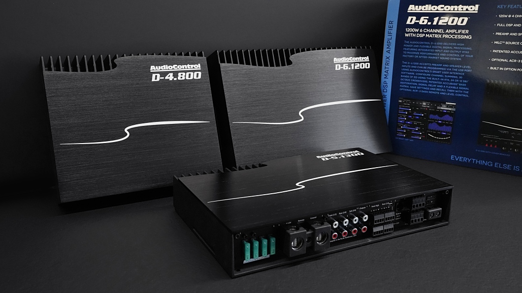 - AudioControl D-4.800 - posledný zosilňovač s DSP procesorom od AudioControl ponúka 4 kanály s vysokým výkonom 4 x 125 alebo 2 x 400 W RMS pri 4 Ohmoch. Ideálne pre zapojenie výkonných reproduktorov v aktívnom režime. Okrem výkonu a skvelého zvuku zaujmú aj kompaktné rozmery vďaka digitálnej technológii. Audiocontrol D-4.800 v sebe spája výkon a inteligentnú flexibilitu do jedného krásneho hliníkového šasi.