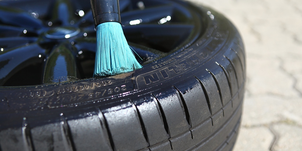 Začnite demontážou kolesa z auta a následným umytím kolesa z vonkajšej aj vnútornej strany autošampónom, my používame šetrný a voňavý Dodo Juice Born To Be Mild alebo Carbon Collective Lusso 2.0. Pri manipulácii s kolesom si dávajte pozor, aby vám koleso nedopatrením neušlo, keď pracujete napr. na mokrej zámkovej dlažbe, ktorá môže byť klzká. Koleso umývajte ak to je možné vo vodorovnej polohe, pokiaľ ho oprite o nejakú stenu, môže sa odkutálať a pri náraze poškriabať.