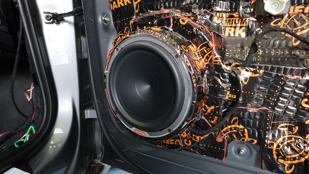 Možno ste si už v našich montážach všimli rozdielneho postupu pri tlmení dverí vozidla. Dôvodom je najmä účel tlmenia dverí. Rozlišujeme teda, či zákazník požaduje dvere vytlmiť z dôvodu výmeny reproduktorov, z dôvodu odhlučnenia dverí, prípadne obidvoch. V našom skoršom článku "ako odhlučniť dvere" sa môžete dozvedieť všetky informácie o odhlučnení dverí, vrátane detailného postupu a fotoreportáže. Ak však požadujete dvere vytlmiť len z dôvodu výmeny reproduktorov a zaistenie čo najlepších podmienok pre ideálnu akustiku nových reproduktorov, bude vás zaujímať skôr tento článok. Postup tlmenia dverí je veľmi podobný ako pri ich odhlučnení. Rozdiel je najmä vo vynechaní protihlukovej vrstvy v podobe zvukovo izolačného materiálu Comfortmat Integra, prípadne odľahčenej varianty Comfortmat Vision. Pri klasickom tlmení dverí neodhlučňujeme ani čalúnenie dverí materiálom Comfortmat Softwave. Naopak aplikujeme iba za stredobasové reproduktory akustický materiál Comfortmat Tsunami, ktorý zamedzí stojatému vlneniu za reproduktorom a vylepšujte tak akustiku stredobasu. U odhlučnení dverí tento krok vynechávame a aplikujeme Tsunami iba vtedy, ak pri inštalácii odhlučnenia meníme reproduktory, alebo si tento krok praje zákazník. V oboch prípadoch aplikácií tlmiacich materiálov zaistíme výraznejšiu basovú zložku reproduktorov a zamedzíme nežiaducim vibráciám a rezonanciám. V prípade odhlučnenia dverí zamedzíme samozrejme aj prenikanie hluku do interiéru vozidla. Pre väčší prehľad teda hlavné rozdiely ešte raz v bodoch: