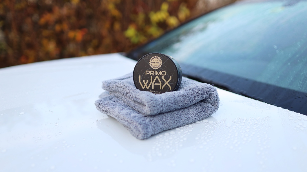 Známe príslovie "to najlepšie na záver" platí aj v našom prípade. Náročnú prípravu laku máme úspešne za nami a čaká nás lahôdka v podobe voskovania laku. Celý tento článok vznikol kvôli vosku Infinity Wax Primo, tak si o ňom najprv poďme niečo zaujímavé napísať. Primo je hybridný vosk a obsahuje teda prírodné aj syntetické zložky. Ak vás zaujíma problematika voskov a rozdiely medzi jednotlivými druhmi, odporúčame najprv prečítať náš článok, ktorý popisuje hlavné rozdiely medzi prírodnými, syntetickými a hybridnými voskami. V čom je ale Primo iný ako klasické hybridné vosky? Väčšina hybridných voskov obsahuje prírodnú karnaubu a syntetické polyméry, ktoré predlžujú životnosť vosku. Primo však okrem najkvalitnejšej brazílskej T1 karnauby obsahuje ešte ďalšie 4 druhy prírodných voskov! Konkrétne montanskou karnaubu, kandelinový vosk, mikronizovaný parafín a časti organického včelieho vosku. Tieto vosky sú dokonale vyvážené, aby poskytovali ohromujúce úrovne lesku a boli dokonale kompatibilné s lakmi. Prírodný vosk sám o sebe má svoje obmedzenia a v Primo je dokonale využitý každý vosk v dokonalej koncentrácii. Ďalšou špecialitkou Prima je obsah ako tekutých, tak pevných polymérov oxidu siričitého, teda SiO2. Ten dodá laku dlhú životnosť a vysokú odolnosť proti chemikáliám. A kombinácia toho všetkého poskytne laku lesk a odvod vody, aký ste u vosku ešte nikdy nevideli. Nielen náš názor je ten, že v odvodu vody predčí aj mnohé keramické ochrany. A čo sa týka hĺbky lesku, tak jednoznačne víťazí na plnú čiaru. Každopádne dosť bolo teórie, poďme k praxi. K aplikácii opäť budete potrebovať aplikátor a mikrovláknovú utierku. A znovu odporučíme aplikátor od Sam's Detailing, tentoraz Sam's Detailing Wax Applicator určený pre voskovanie. Sam si so svojimi aplikátormi naozaj vyhral do detailu. Aplikátor sa skvele drží a jeho aplikačná plocha je veľmi jemná pre najšetrnejšie voskovanie. Jeho dizajn navyše umožní rovnomerné a veľmi rýchle nanášanie vosku. Musím za nás všetkých napísať, že tak rýchlo navoskované auto sme nikdy nemali. Prejdime teda konečne k aplikácii. Vosk naneste na aplikátor a potom na lak. Vosk aplikujte ideálne pohybmi v jednom smere, vyhnite sa krúživým pohybom. A stačí ho naozaj málo. Čo je na tomto vosku geniálne je práve aplikácia. U aplikácii normálneho vosku by sme vám poradili, nech pracujete po častiach a po pár minútach jednotlivý diel karosérie rozleštili. To u Prima neplatí a je v podstate jedno, či ho necháte pôsobiť 3 minúty alebo (bez preháňania) pol hodiny. Pôjde vždy ľahko rozleštiť. Pokojne teda môžete naniesť vosk na viac častí karosérie a potom rozleštiť mikrovláknovou utierkou, napríklad už vyššie zmienenú Purestar Premium Buffing Towel, ktorú vidíte aj na fotke nižšie. Vzhľadom k jednoduchej aplikácii odporúčame naniesť aj druhú vrstvu, ktorá ešte predĺži životnosť a znásobí efekt tohto vosku. Medzi jednotlivými vrstvami by mala byť minimálne hodina pauza. A čo napísať na záver? Snáď len, že aplikáciu si budete užívať aj vďaka úplne skvelej citrusovej vôni tohto vosku.