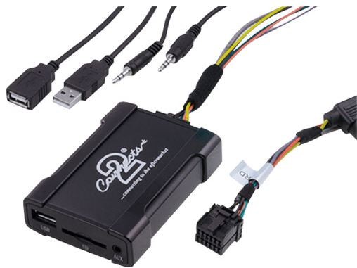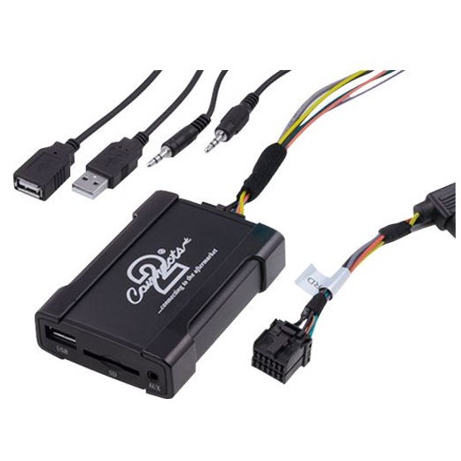 Adaptér umožňujúci pripojenie USB vstupu, AUX vstupu (3,5 JACK) a prehrávanie SD karty k OEM autorádiám s ovládaním CD meniča (na miesto pripojenia CD meniča). Ovládanie prehrávania hudby (výber skladby a CD) z USB príslušenstvo a SD karty pomocou OEM autorádia.