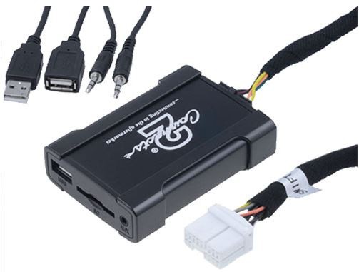 Adaptér umožňujúci pripojenie USB vstupu a AUX vstupu (3,5 JACK) k OEM autorádiám s ovládaním CD meniča (na miesto pripojenia CD meniča). Ovládanie prehrávania hudby z USB príslušenstva pomocou OEM autorádia.