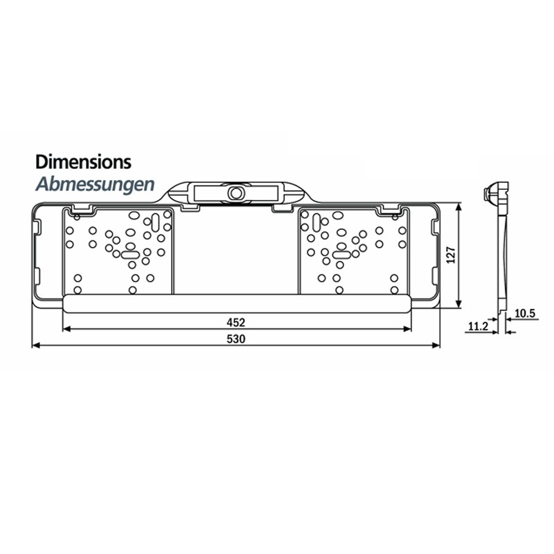 Univerzálny parkovacia kamera s podložkou pod ŠPZ. Vodotesná, odolná voči poveternostným vplyvom. Plynulo nastaviteľný uhol pohľadu kamery, široký záber zamedzuje mŕtvemu uhlu.