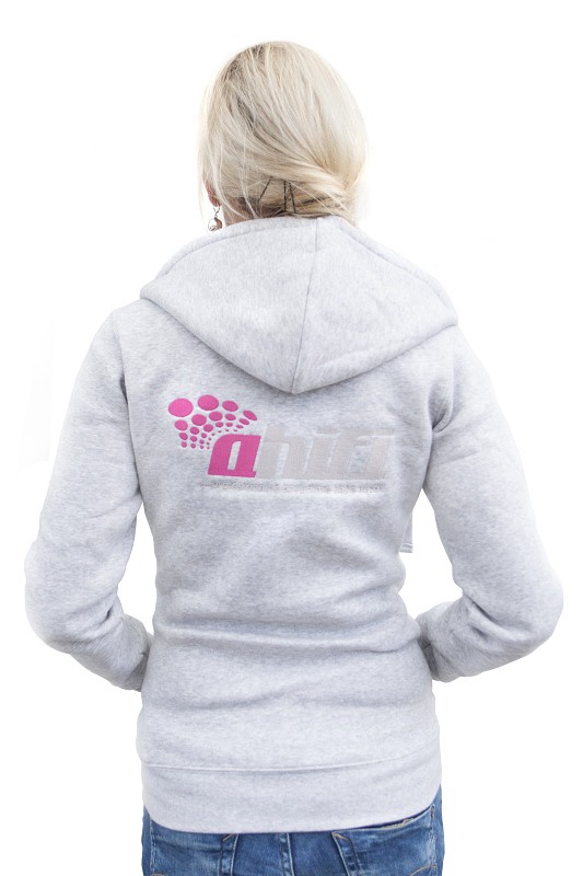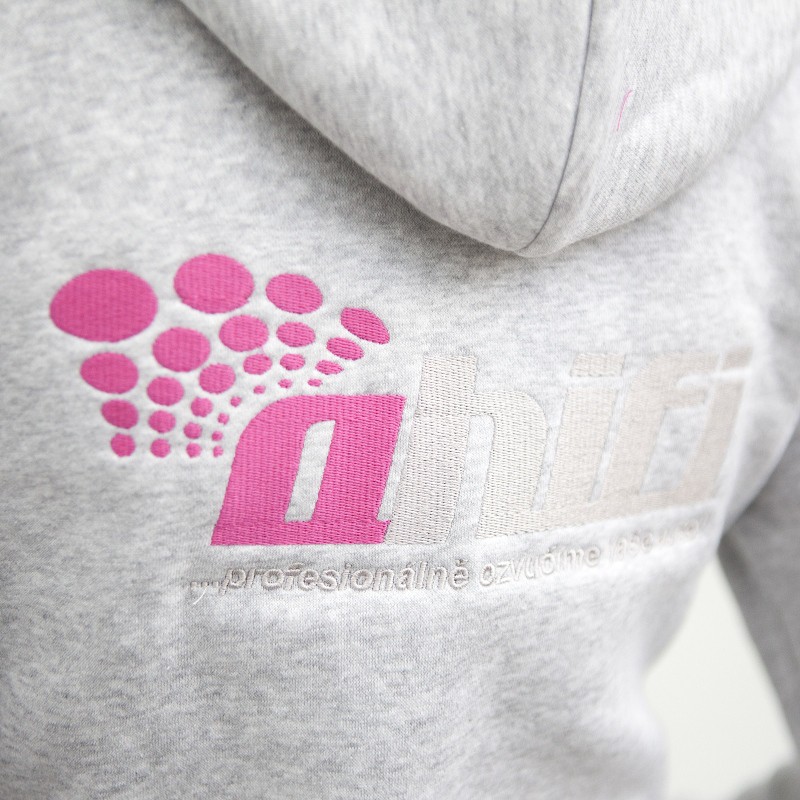- Pohodlná mikina s ružovým logom Ahifi na prsiach a cez chrbát