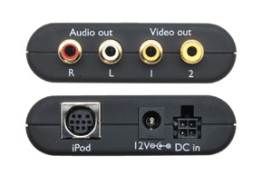 - IVA-2010 adaptér pre iPod alebo iPhone umožňuje prenášať videosignál do ľubovolného monitora (žltý CINCH), súčasne so zvukom ktorý môže byť prehrávaný reproduktormi automobilu.