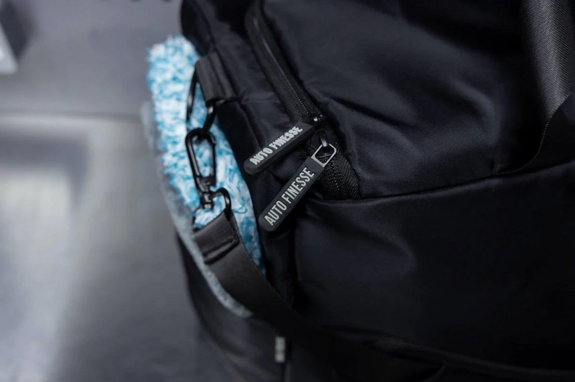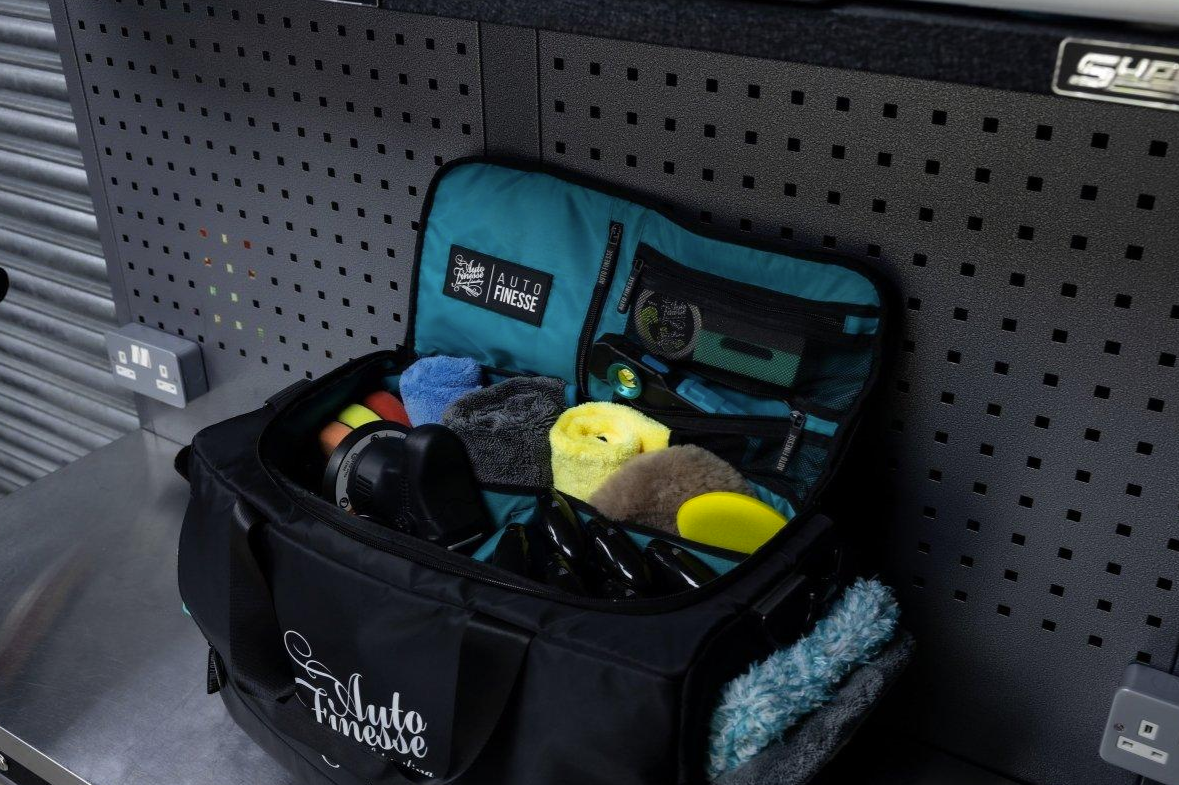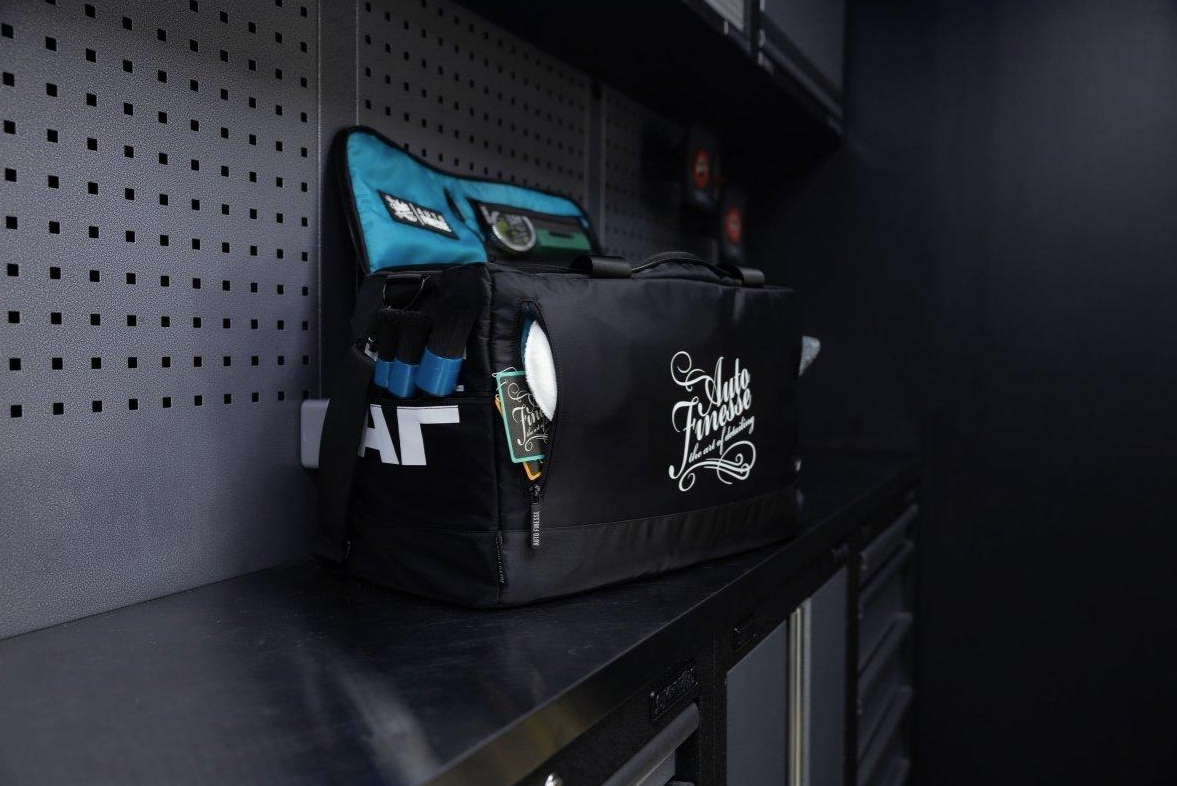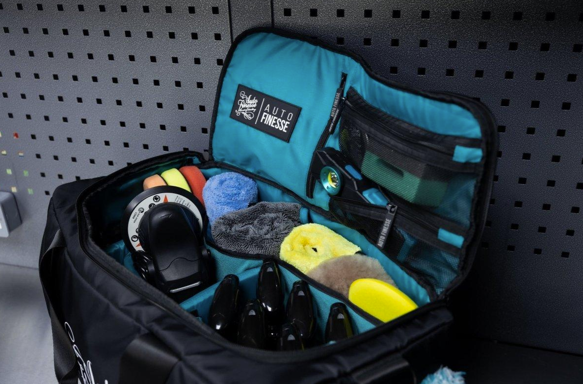 Auto Finesse Deluxe Holdall je sektorová detailingová taška, koncipovaná ako najlepší profesionálny bag na svete. Je nielen dokonalým spojením štýlu a funkčnosti, ale aj najaktuálnejším, najužitočnejším a najvšestrannejším doplnkom na trhu. Spoľahlivá pracovná taška, ktorá bola navrhnutá detailermi pre detailerov tak, aby ponúkala dokonalý vzhľad a použiteľnosť. Deluxe Holdall bola navrhnutá tímom Auto Finesse. Má obrovskú kapacitu – dostatok priestoru pre všetko, čo potrebujete pre akúkoľvek predstaviteľnú prácu. Hlavná priehradka je vybavená nastaviteľnými polstrovanými prepážkami, ktoré vám umožnia nakonfigurovať si tašku tak, ako uznáte za vhodné. Je dostatočne veľká, aby pojala až 20 ks 1litrových fliaš, alebo 36 ks 500ml fliaš, príp. aj 4 ks 5litrových fliaš. Ďalej potom obsahuje vrecká a puzdrá na bezpečné uloženie mnohých ďalších doplnkov a príslušenstva. Tento robustný spoločník, ktorý je predstavený v klasickej čiernobielej farbe, ponúka špičkovú kvalitu. Ťaží tiež zo spevnených a odolných popruhov (doplnených kovovými úchytmi a polstrovanou vypchávkou).