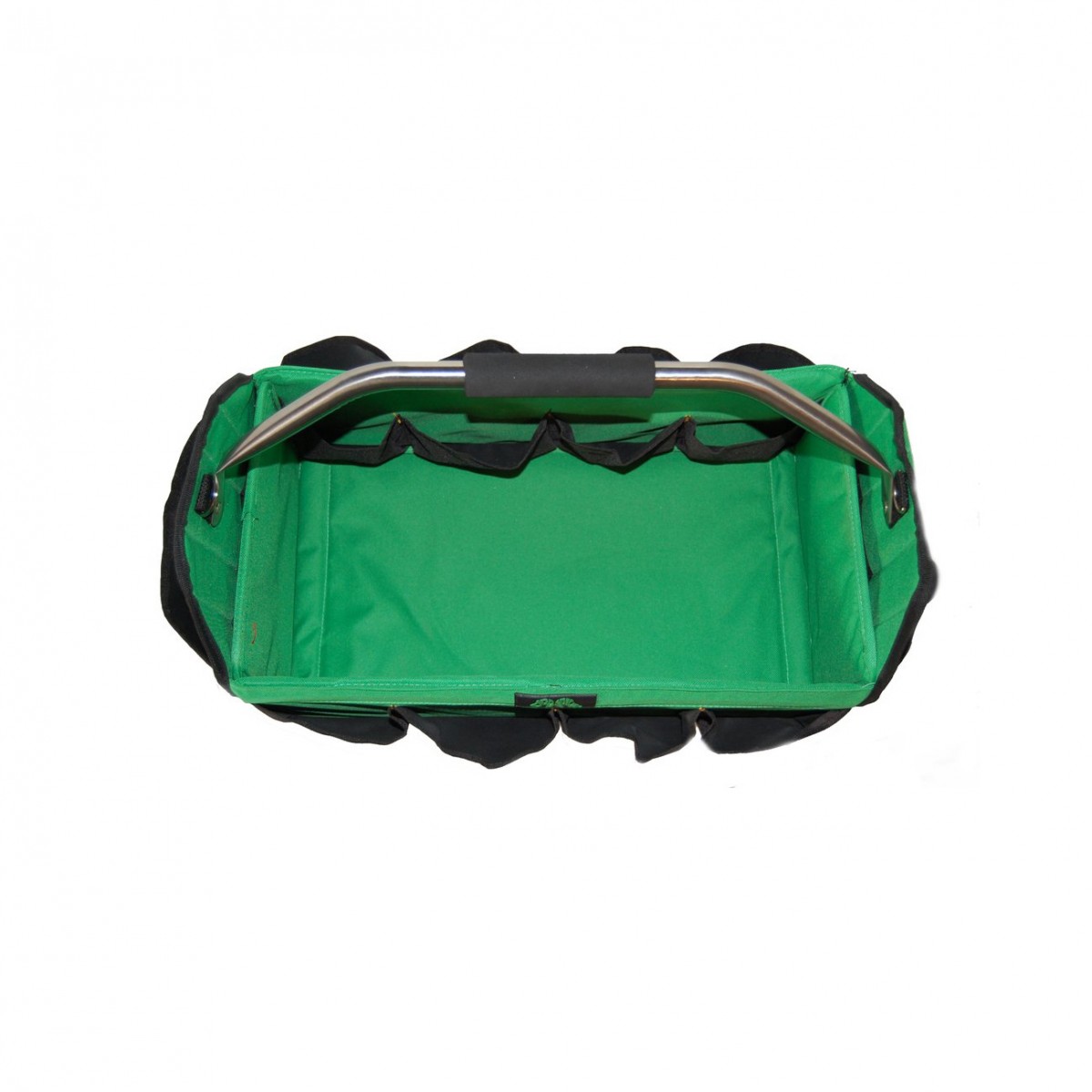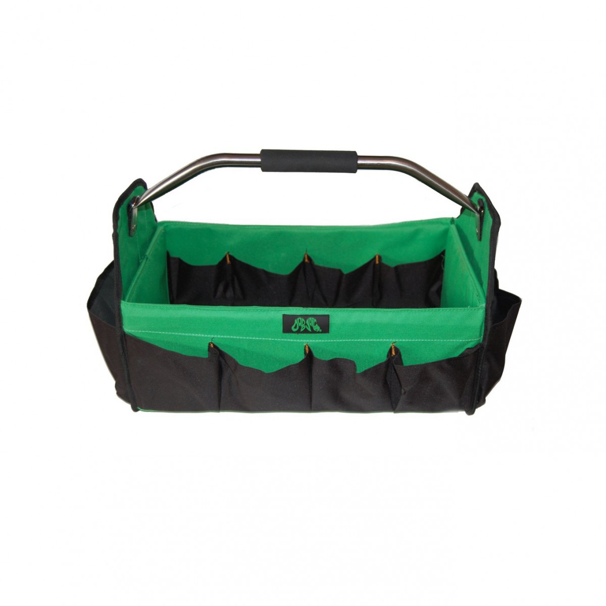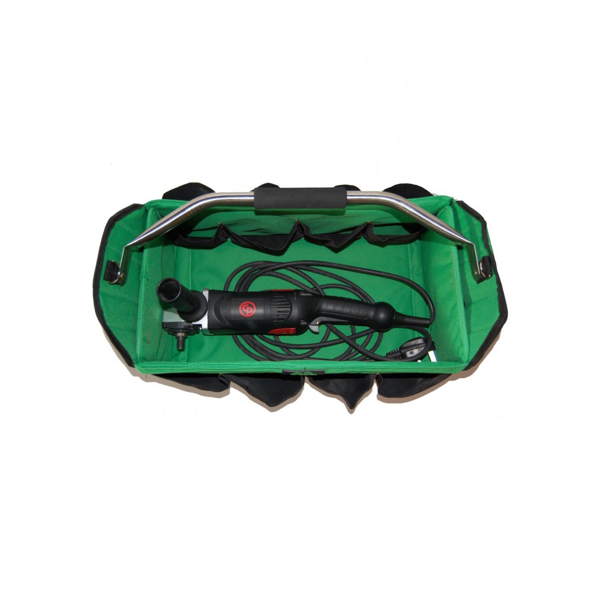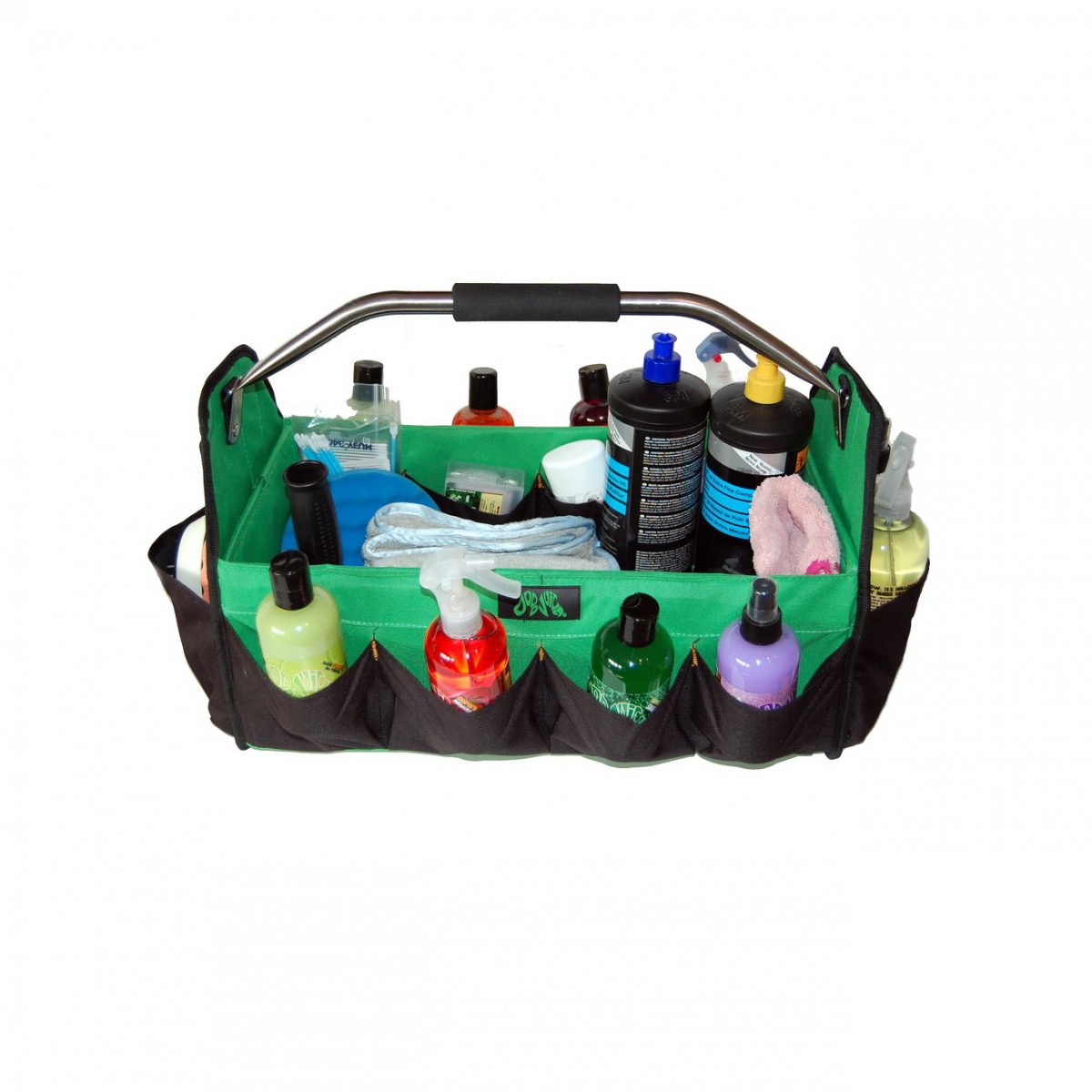 Detailingová taška Dodo Juice Tooled Up Bag je skvelým pomocníkom na prenášanie celej vašej detailingovej výbavy. Táto taška má naozaj veľkorysé rozmery, čo znamená, že sa vám dovnútra vojde niekoľko leštičiek (vo vodorovnej polohe) a bočné vrecká dokážu pojať až 14 fliaš s objemom 250 ml (tri v každom koncovom vrecku). Vnútri sú ďalšie štyri vrecká - ideálne pre clay, kotúče, kefy na kolesá atď. Skvelý prístup do tašky získate po sklopení držadla. Taška je na spodnej strane vybavená gumovými nožičkami, čo zaistí stalibitu na zemi.
