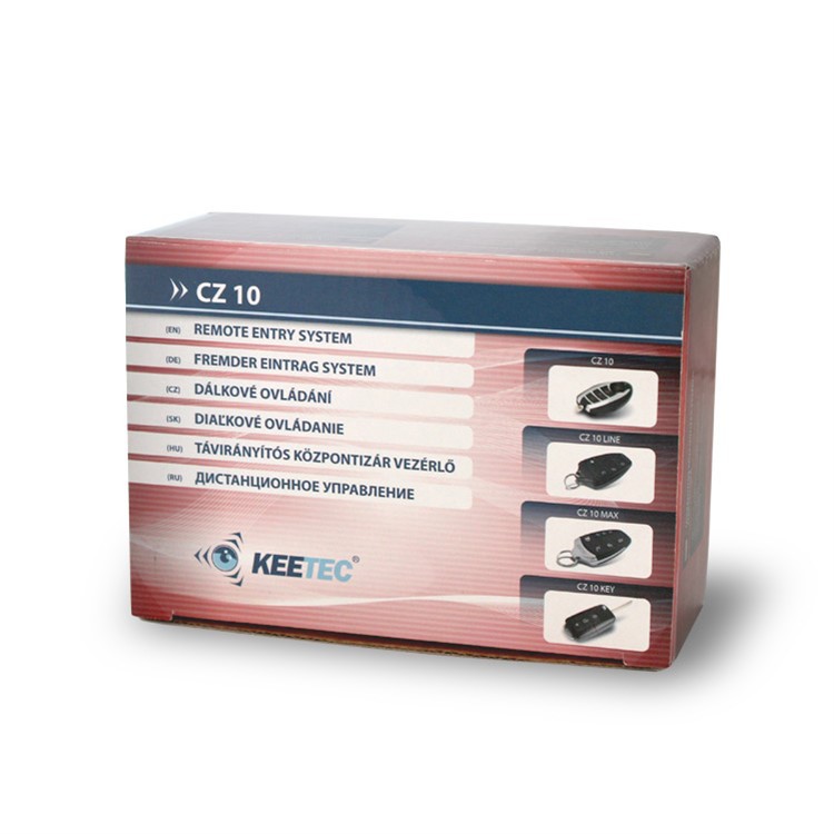 Riadiaca jednotka centrálneho zamykania KEETEC CZ 10 LINE – cenovo dostupný systém KEETEC, obsahuje 2 ks diaľkových ovládačov (1 ks RC LINE + 1 ks RC METAL). Ovládanie batožinového priestoru, ovládanie centrálneho zamykania výstupom otvorenie/zatvorenie 500 mA, optická signalizácia.