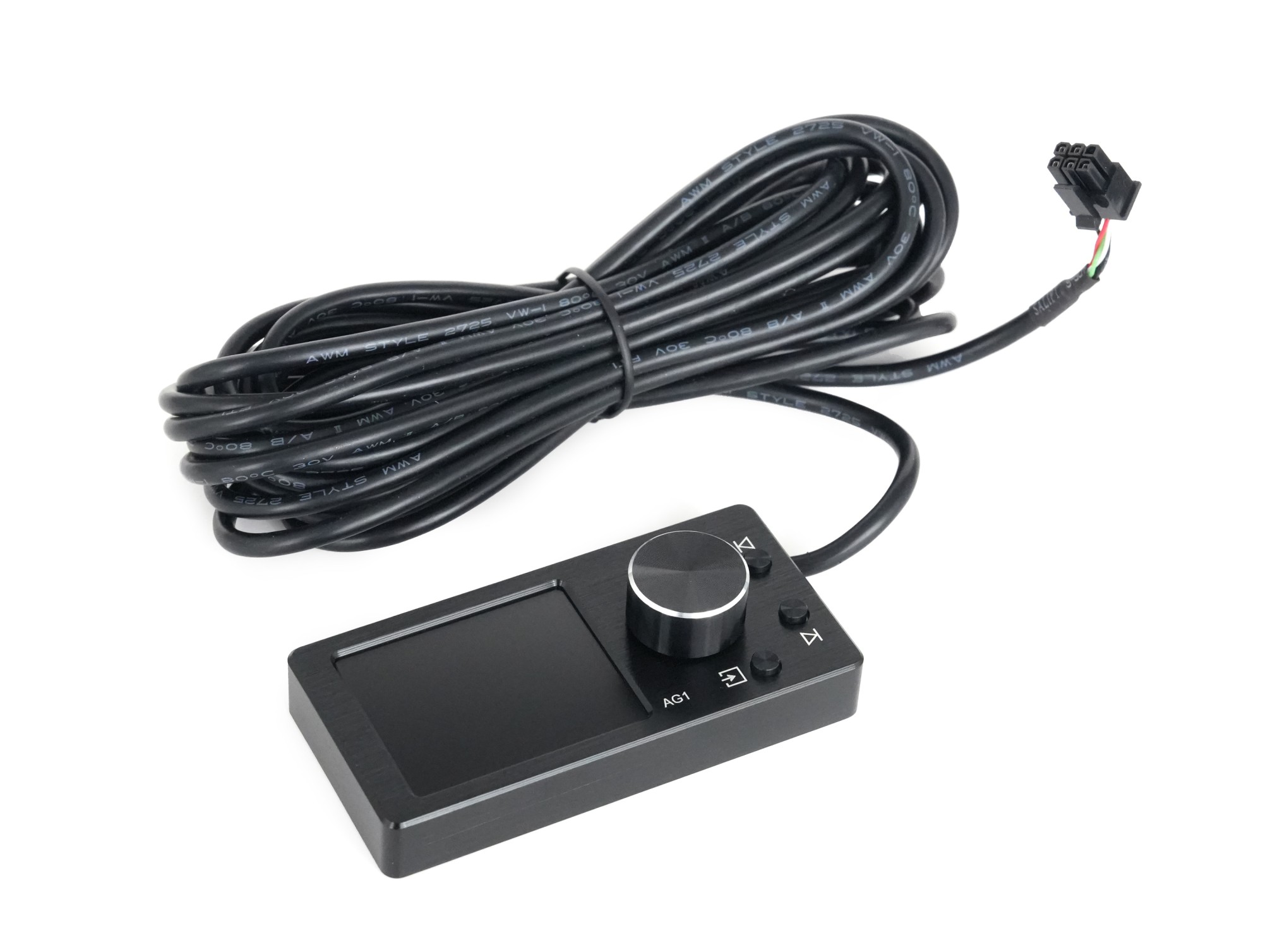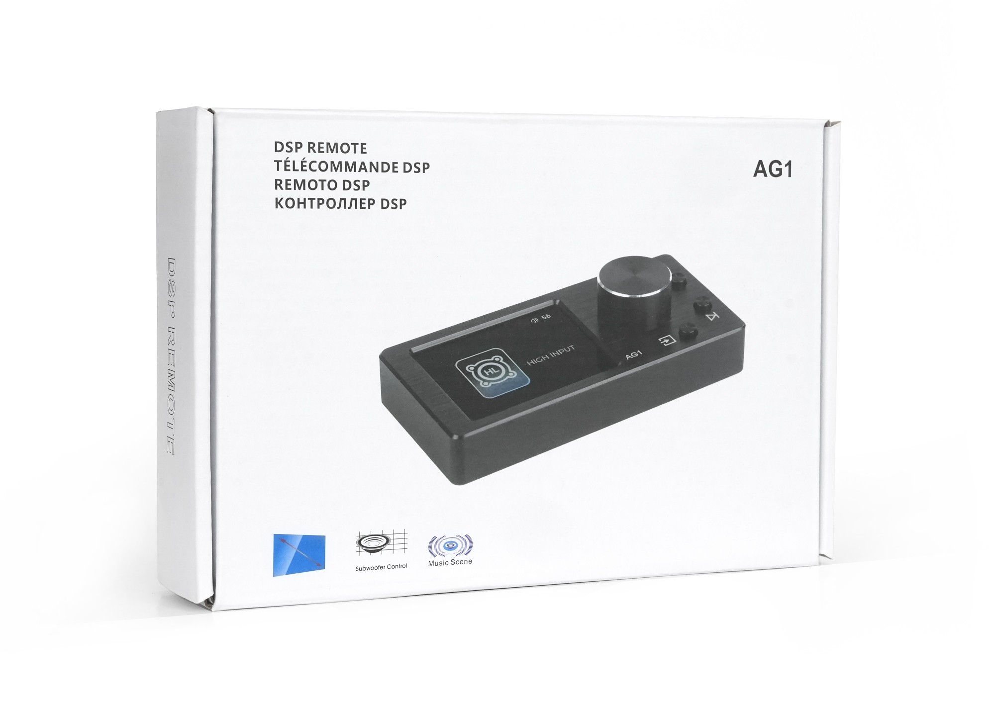 Nakamichi AG1 je externé diaľkové ovládanie určené na ovládanie kompatibilných DSP procesorov Nakamichi. Slúži ako komfortné rozhranie pre rýchle nastavenie hlasitosti, úrovne subwoofera a prepínanie uložených scén bez nutnosti pripojenia k aplikácii alebo počítaču. Vďaka kompaktným rozmerom a integrovanému displeju je vhodné na skrytú aj viditeľnú montáž v interiéri vozidla. Ovládač je vybavený 2" HD displejom, ktorý zobrazuje aktuálny zdroj signálu, hlasitosť, číslo scény a informácie o prehrávanej skladbe. Centrálny otočný ovládač slúži na plynulé nastavenie hlavnej hlasitosti, po prepnutí aj hlasitosti subwoofera. Krátkym stlačením je možné systém stlmiť (mute), dlhým stlačením sa aktivuje režim nastavenia subwoofera. Samostatné tlačidlá umožňujú prepínanie skladieb, výber zdroja signálu a zmenu DSP scén. Prepínanie scén je riešené dlhým stlačením tlačidla približne 3 sekundy, následne je možné krátkym stlačením tlačidiel predchádzajúca / ďalšia skladba okamžite prepínať medzi uloženými scénami a priamo ich načítať. To je ideálne napríklad pre rýchle prepnutie medzi denným počúvaním, hlasnejším režimom alebo demo nastavením.