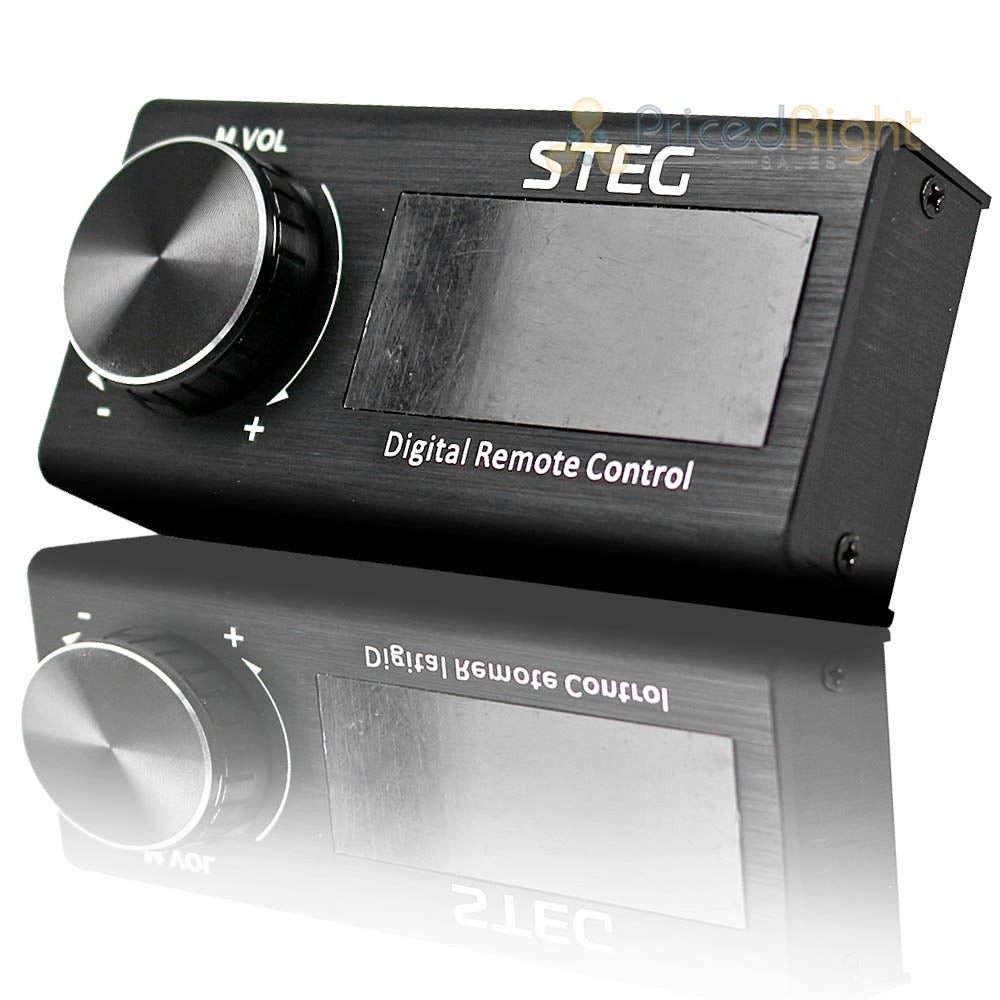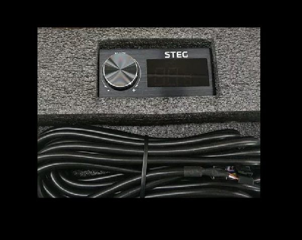 Externý diaľkový ovládač s displejom STEG Remote Controller pre STEG SDSP68, STEG SDSP8, STEG SDSP6. Rozmery: 75 x 35 x 20. Je možné cez neho ovládať subwoofer, prepínať presety alebo hudbu stlmiť (mute).