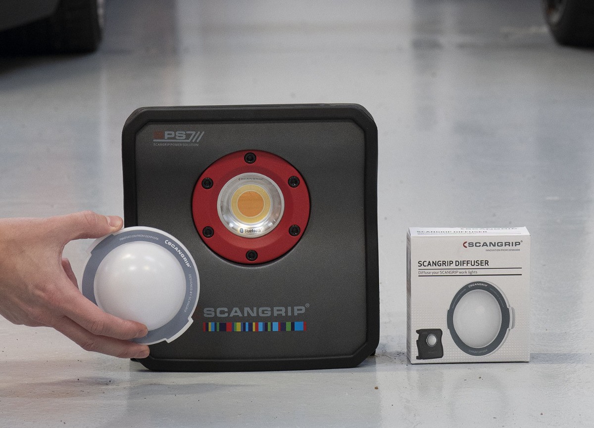 Rozptyľovač svetla je navrhnutý tak, aby rozptyľoval a zmäkčil svetlo, čo vám umožní osvetliť celý pracovný priestor a vyhnúť sa tvrdým tieňom. Poskytuje vám vyššiu funkčnosť a nové možnosti prispôsobiť svoje pracovné svetlo ešte viac konkrétnej pracovnej úlohe. Kryt je neuveriteľne hladký a ľahký. Silné vstavané magnety umožňujú jednoduchú a bezpečnú montáž krytu na lampu SCANGRIP. Používanie SCANGRIP DIFFUSER spoločne s MULTIMATCH 3 výrazne zvyšuje funkčnosť pracovného svetla, pretože difúzor zmäkčuje a rozptyľuje svetlo na povrchu automobilu, takže sa vyhnete prudkému svetlu a ostrým tieňom.
