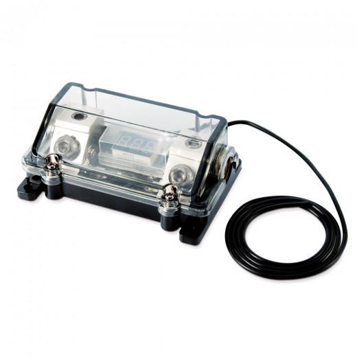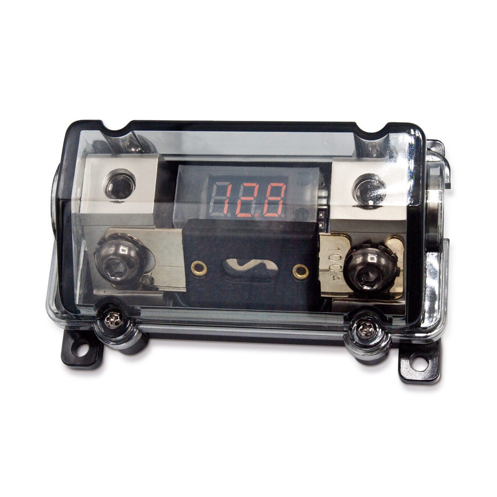 Distribučný blok pre poistky ANL s integrovaným voltmetrom, vybavený pre káble do 35 mm², dve redukcie pre kábel 16 mm². Pre bezpečné uchytenie má tento držiak štyri otvory na vonkajších rohoch. Rozmery (d x š x v): 106 x 70 x 42 mm, hmotnosť 280 gramov.