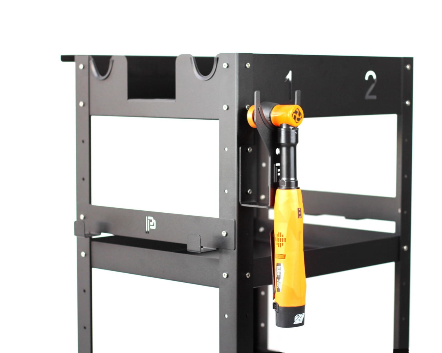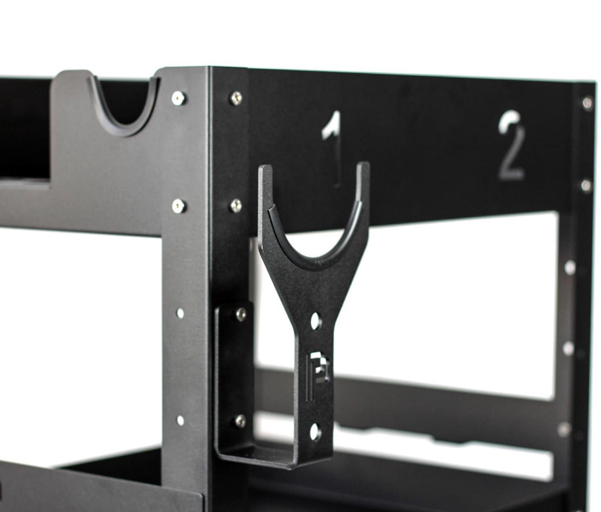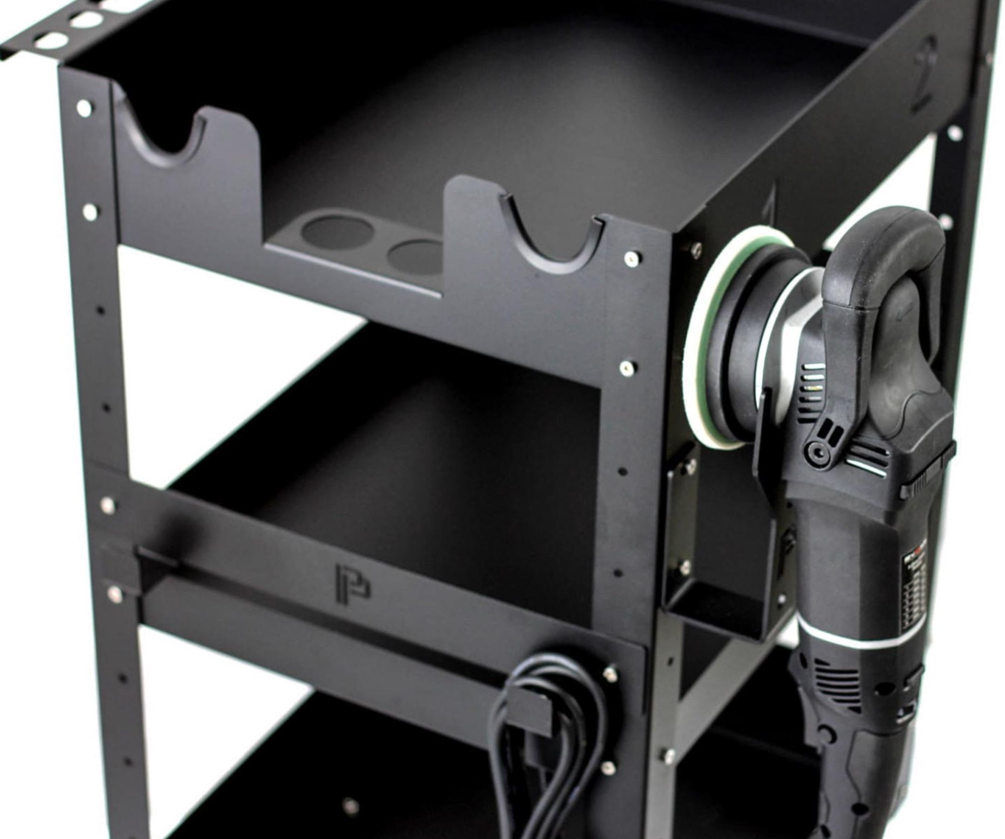 Vysoko kvalitný vešiak na jednu leštičku s praktickým úchytom na kábel. Držiak je vhodný ako pre DA, tak aj rotačný typ stroja s unášačmi s veľkosťou 30 až 180 mm. Držiak je špeciálne vyvinutý na pohodlnú montáž na jeden z detailingových vozíkov Poka Premium. Je vyrobený z kvalitného kovu, ktorý je nalakovaný práškovou farbou, ktorá ho chráni proti oxidácii.