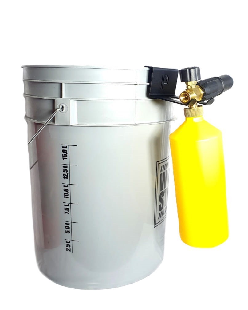 Jednoduchý univerzálny držiak ponúka širokú škálu využitia. Napríklad na uchytenie napeňovača, veľkej kefy na čistenie kolies a pod. Držiak je určený na zavesenie na vedro. Kvalitný kov je lakovaný práškovou farbou, ktorá chráni proti oxidácii. Vyrezané logo PP.