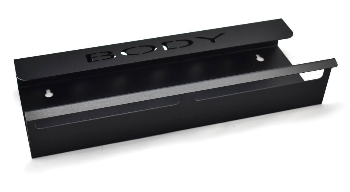 Funkčný a praktický držiak štetcov a mixovacích fliaš. Horné otvory sú vhodné pre väčšinu dostupných štetcov, nižšie otvory potom pre väčšinu typov rozprašovačov. Pevná konštrukcia vydrží zaťaženie viac ako 10 kg. Montážne otvory na priskrutkovanie na stenu sú umiestnené v hornej časti police, vďaka tomu zaručujú úplnú stabilitu. Držiak je vyrobený z kvalitného kovu, ktorý je lakovaný práškovou farbou, ktorá chráni proti oxidácii.