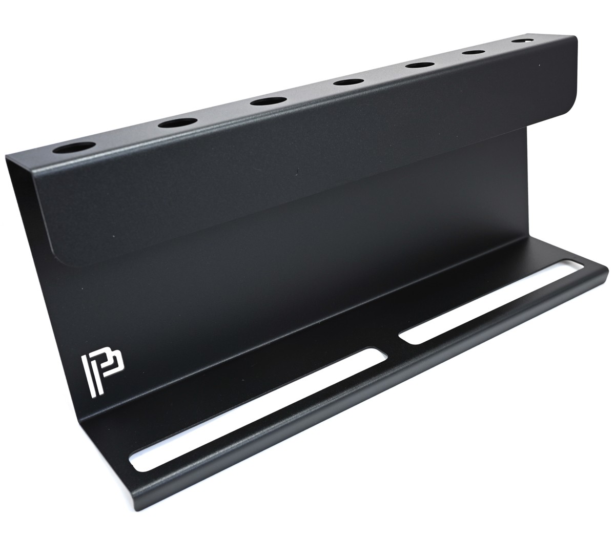 Praktický a pohodlný držiak štetcov a mixovacích fliaš. Horné otvory sú vhodné pre väčšinu dostupných štetcov, nižšie otvory potom pre väčšinu typov mixovacích fliaš s rozprašovačmi. Pevná konštrukcia vydrží zaťaženie viac ako 10 kg. Montážne otvory na priskrutkovanie na stenu sú umiestnené v hornej časti police, vďaka tomu zaručujú úplnú stabilitu. Držiak je vyrobený z kvalitného kovu, ktorý je lakovaný práškovou farbou, ktorá chráni proti oxidácii. Telo držiaka je obohatené o efektné logo Poka Premium.
