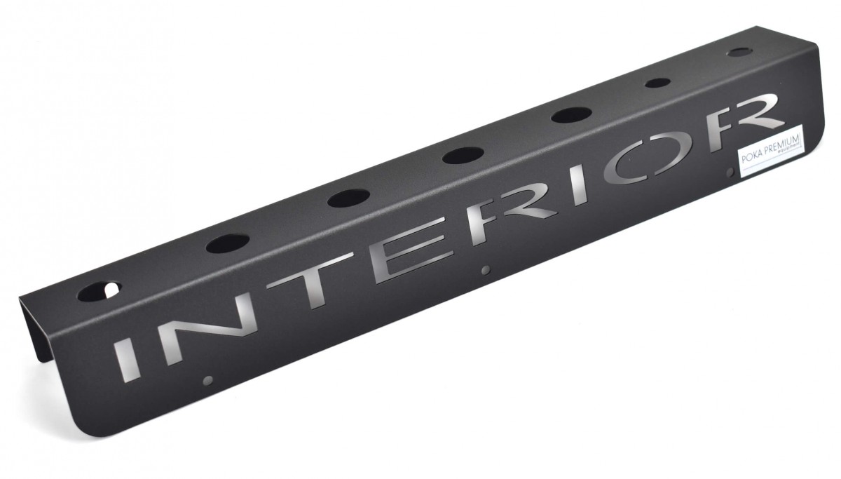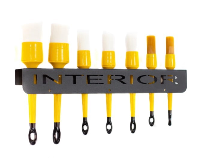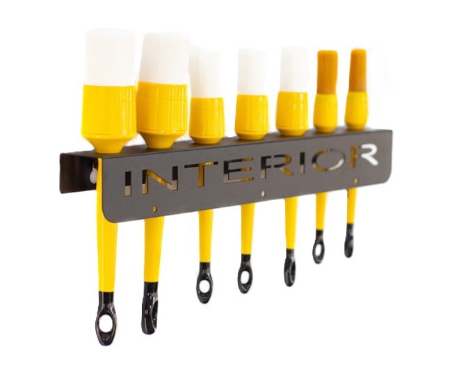 Poka Premium Holder for brush a car care accessories - 40 cm je univerzálny masívny nástenný držiak pre 7 štetcov na detailing automobilu, ktorý je praktický a funkčný s označením INTERIOR. Otvory sú vhodné pre väčšinu dostupných štetcov na trhu. Montážne otvory na priskrutkovanie na stenu sú umiestnené v zadnej časti držiaka, vďaka tomu zaručujú úplnú stabilitu. Držiak je vyrobený z kvalitného kovu, ktorý je lakovaný práškovou farbou, ktorá chráni proti oxidácii. Z čelnej strany je efektné rezané logo Poka Premium.