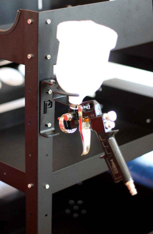 Poka Premium Single holder for Spray Gun je univerzálny držiak na jednu striekaciu pištoľ s možnosťou upevnenia na stenu či detailingový vozík. Vysoko kvalitný držiak je vhodný na bezpečné uloženie striekacích pištolí s nastaviteľnou podperou pre rôzne veľkosti nádobiek na tekutiny. Žiadne ostré hrany pre maximálnu ochranu. Držiak je možné upevniť aj na detailingový vozík Poka Premium. Vyrobený z vysoko kvalitnej pozinkovanej ocele 3 mm. Precízne rezané a ohýbané, nakoniec lakované práškovou farbou na zaistenie maximálnej ochrany proti oxidácii.