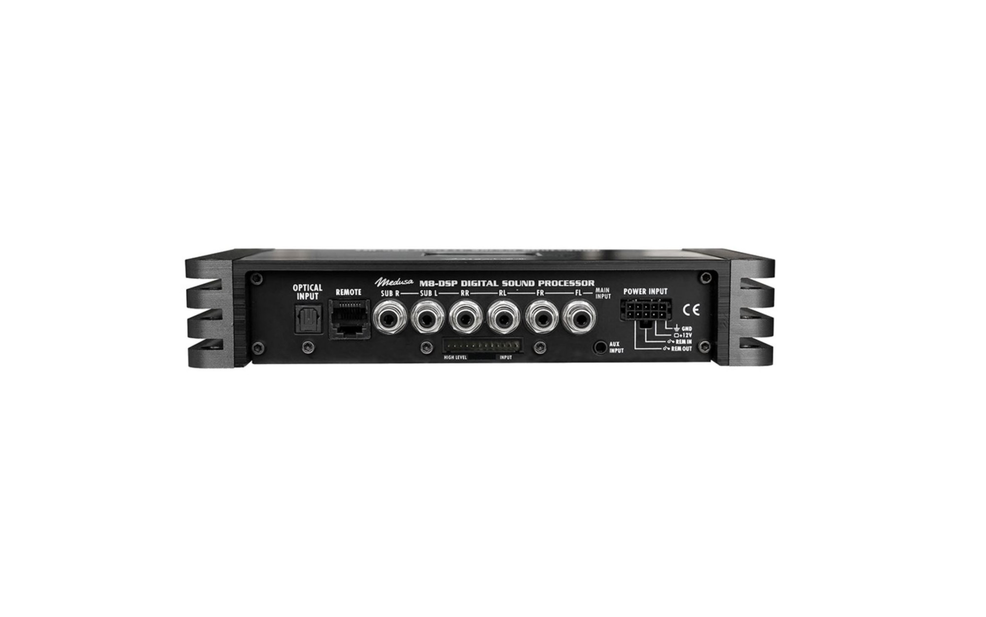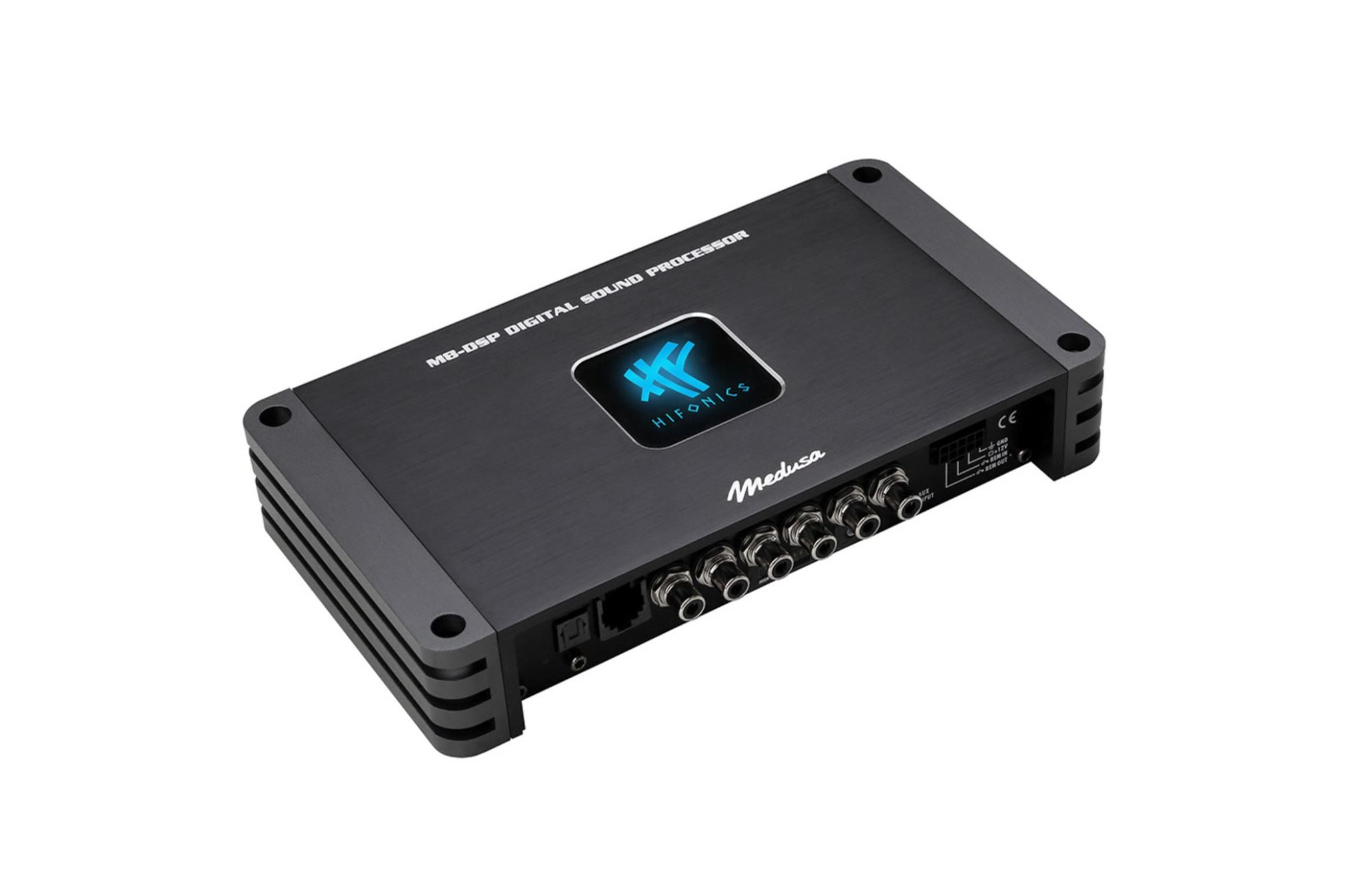 8kanálový procesor MEDUSA M8-DSP-E umožňuje optimálne nastavenie existujúcich alebo následne inštalovaných reproduktorov s neuveriteľne dobrou presnosťou a kvalitou zvuku až do 31 frekvenčných pásiem na kanál. Nastaviteľné výhybky so strmosťou až 48 dB zaisťujú presnú účinnosť separácie a časové oneskorenie potom ideálne predné rozostavenie. Procesor je možné spustiť až so 6 vstupmi RCA alebo, pokiaľ to vyžadujú vstupy, cez vysoké úrovne. Vďaka grafickému užívateľskému rozhraniu softvéru M-CONTROL 2 je ovládanie a programovanie intuitívne.