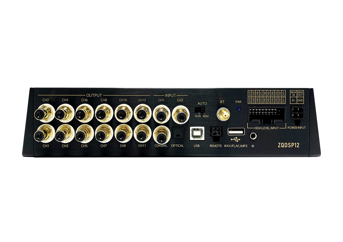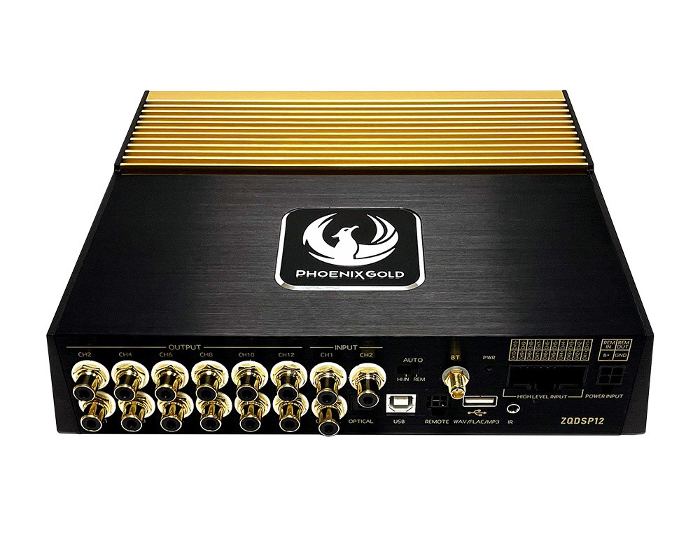 Phoenix Gold ZQDSP12 je špičkový DSP procesor, ktorý patrí do najvyššej modelovej rady ZQ od Phoenix Gold. Procesor disponuje rozsiahlym vybavením s 12 spracovateľnými kanálmi, bohatou konektivitou, integrovaným prehrávačom médií a Bluetooth pripojením. Tak ako ostatné produkty rady ZQ poskytuje procesor ZQDSP12 pôsobivé zvukové vlastnosti a všetky funkcie potrebné na vytvorenie dokonalého zvukového nastavenia, ako sú plne nastaviteľné filtre, parametrický ekvalizér s nastaviteľnou hodnotou Q alebo oneskorenie signálu. Spoločným znakom rady ZQ je aj luxusný dizajn v čierno-zlatom prevedení s použitím ušľachtilých materiálov. Procesor ZQDSP12 je esenciou základných hodnôt spoločnosti Phoenix Gold a obsahuje mnoho pôvodných technológií výroby, ktoré značku od počiatku preslávili. A tiež špičkové komponenty z celého sveta. Duálny napájací zdroj spolu s high-endovými nemeckými a japonskými kondenzátormi Wima a Nichicon spoločne zabezpečujú efektívne a neprerušované napájanie. Vysoko výkonné potenciometre najvyššej kvality slúžia na podporu výkonu, zatiaľ čo tienené jadrá transformátorov vyrobených v Nemecku zabezpečujú čistý prísun energie v rámci celého procesora. Môžete sa spoľahnúť na vynikajúcu konektivitu vďaka terminálom pozláteným 24-karátovým zlatom, ktoré zdobia aj dosky plošných spojov. Všetky tieto technologické prednosti dopomohli k vytvoreniu unikátnej rady sound quality zosilňovačov, ktoré si nájdu srdcia mnohých audio fanatikov.