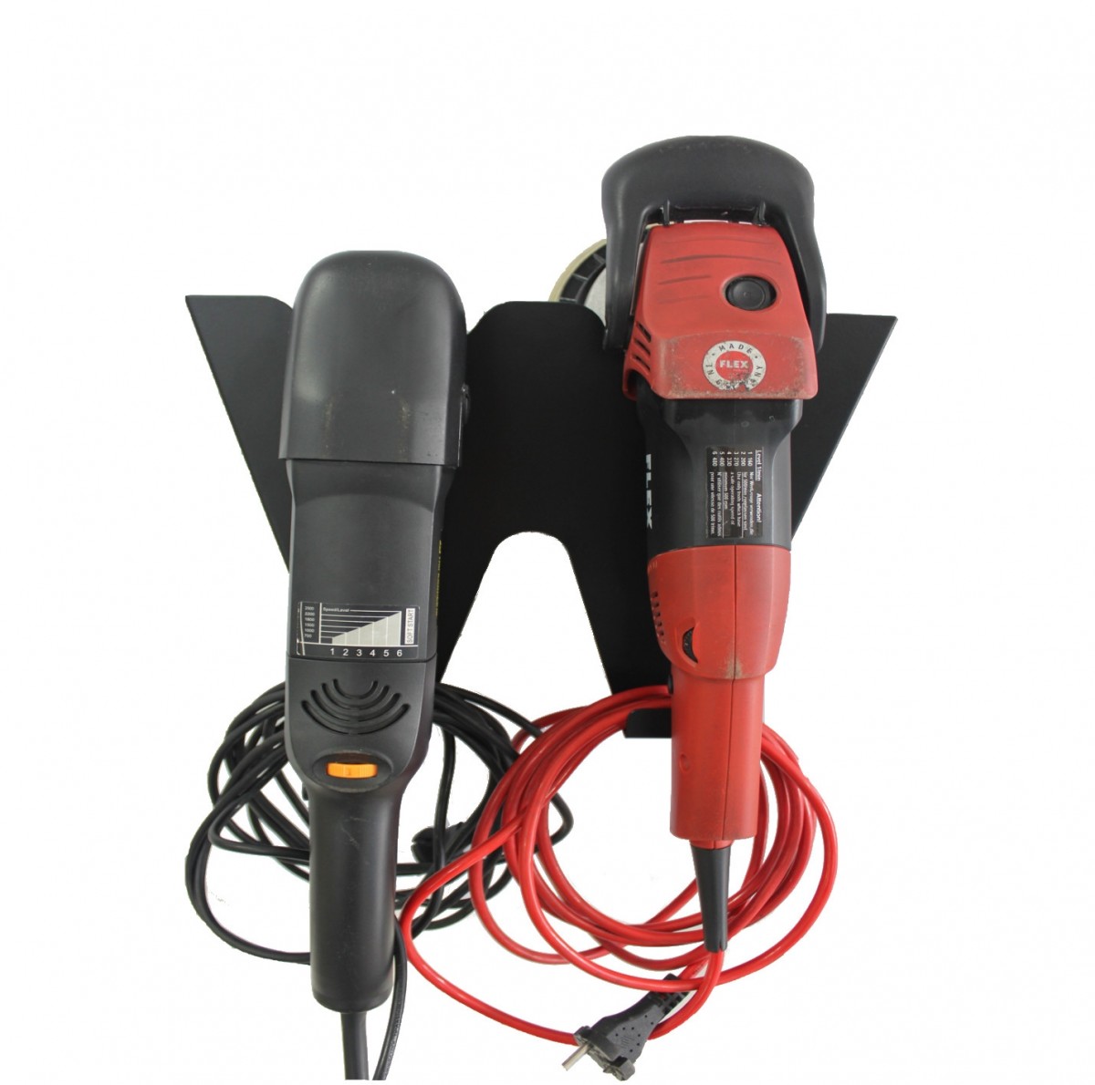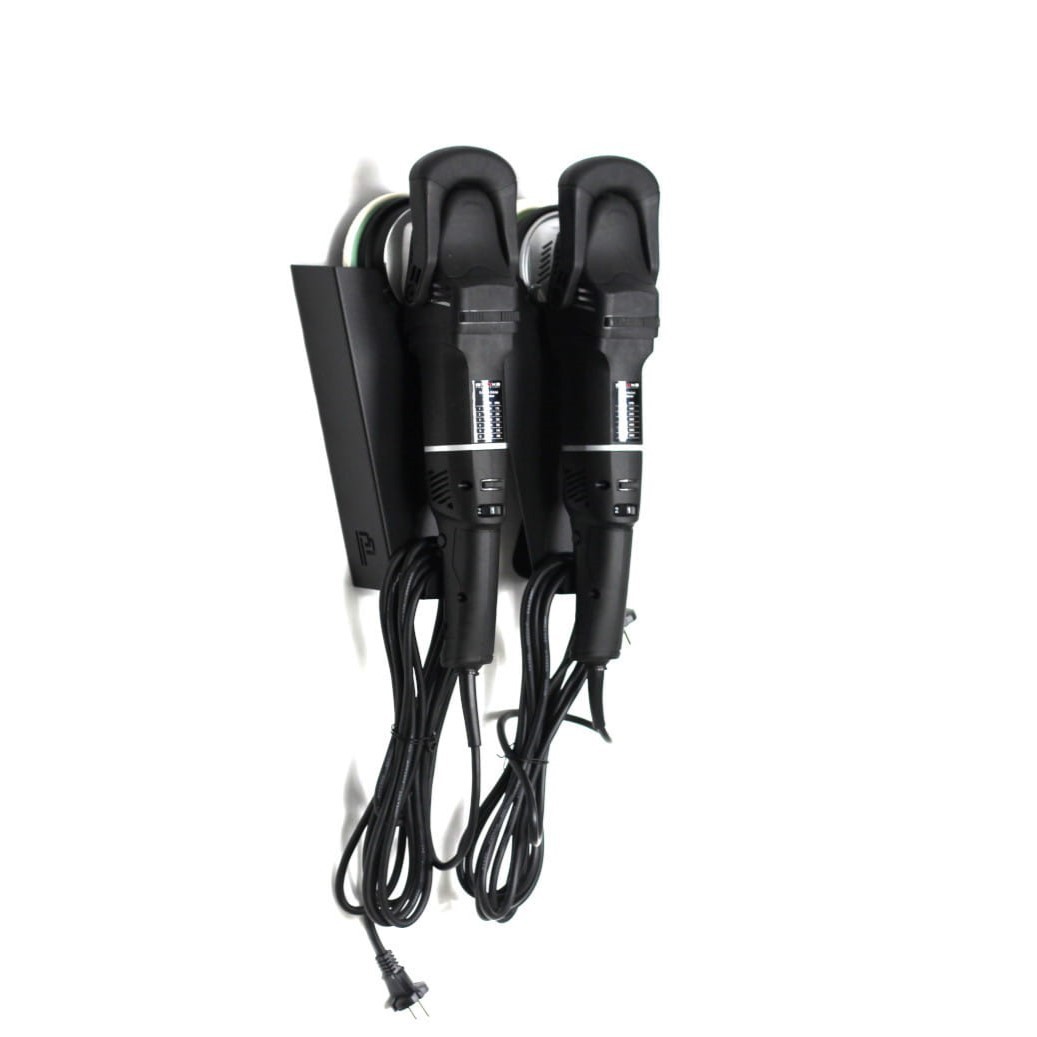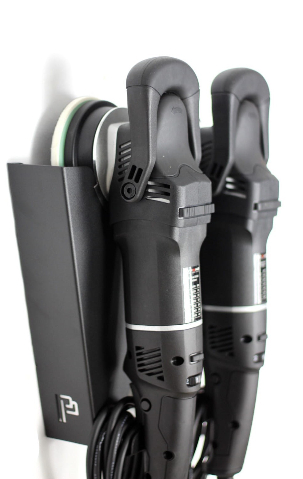 Vysoko kvalitný držiak na dve leštičky s úchytmi na káble, vďaka čomu zaberú naozaj veľmi málo miesta. Držiak je vhodný ako pre DA, tak aj rotačný typ stroja s unášačmi s veľkosťou 30 - 180 mm. Montážne otvory na priskrutkovanie na stenu sú umiestnené v hornej časti police, vďaka tomu zaručujú úplnú stabilitu. Držiak je vyrobený z kvalitného kovu, ktorý je lakovaný práškovou farbou, ktorá chráni proti oxidácii.