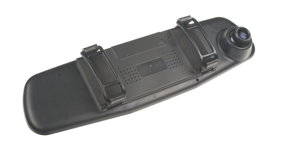 2-kanálová kamera s veľmi vysokým rozlíšením FULL HD integrovaná do spätného zrkadla s 4,3“ mikrofónom, video vstupom pre zadnú kameru a záznamom obrazu a zvuku na micro SD kartu. Je vhodná hlavne pre neustále monitorovanie dopravnej situácie pred vozidlom. Záznam je možné použiť pri objasňovaní dopravných nehôd. Kamera je vhodná aj pre záznam športových automobilových aktivít, pre záznam akcií bezpečnostných zložiek, apod. Veľmi jednoduché ovládanie, indikácie stavu LED diódou. Pripojenie k PC je pomocou USB konektora. Možnosť nastavenia dátumu a času, každý video záznam obsahuje v obraze „časovú pečiatku“. Záznam prebieha v slučke, tzn., že sa automaticky premazávajú staré záznamy. Nahrávanie začne automaticky po zapnutí kamery (pripojenie napájania). Následne je možné analyzovať dáta, nájsť príčiny, prehrávať scény. Výber záznamu z jednej alebo oboch kamier, zobrazenie na displeji jednej alebo oboch kamier, prepínanie zobrazení veľkosti obrazu z kamier.