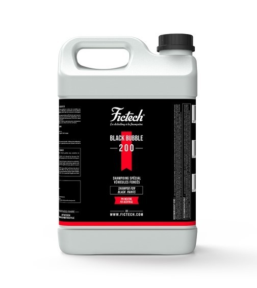 Black Bubble je pH neutrálny autošampón, ktorý je špeciálne navrhnutý na umývanie čiernych a tmavých lakovaných karosérií, ktoré sú veľmi citlivé na mikroškrabance. Tmavé karosérie sú vždy náročnejšie na údržbu a je na nich väčšia pravdepodobnosť výskytu jemných škrabancov spojených s používaním nevhodného vybavenia a tiež zlých kontaktných umývacích techník. Preto spoločnosť Fictech vyvinula technológiu Black Bubble. Šampón s neutrálnym pH, ktorý rešpektuje lak a vrstvy vosku (prírodného alebo syntetického), ktoré možno na vozidlo naniesť. Jeho zloženie nabité lubrikačnými látkami umožňuje vytvorenie silného filmu podporujúceho dokonalé kĺzanie rukavice po karosérii. Fictech Black Bubble možno použiť na lesklé aj matné laky alebo PPF fólie. Po opláchnutí zanecháva povrch vozidla lesklý a vďaka svojmu vodoodpudivému zloženiu výrazne skracuje čas schnutia. Zloženie Black Bubble obsahujúce vosk bude mať priamy dôsledok v tom, že po vyčistení zanechá na aute veľmi lesklý povrch s mokrým efektom. Black Bubble je ideálny šampón na údržbu tmavých odtieňov laku, ale nielen tam, skvele sa hodí aj na svetlé odtiene, ktoré by sa tiež mohli ľahko poškriabať. Poslednou výhodou šampónu Black Bubble je jeho samoschnúca schopnosť po opláchnutí. Vďaka tomu je následné sušenie oveľa jednoduchšie.