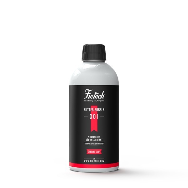 Fictech Butter Bubble je prvý šampón špeciálne navrhnutý pre dekontamináciu a umývanie laku v jednom kroku. Obsahuje veľké množstvo mazív, minimalizuje teda možnosť poškrabania laku karosérie. Po oplachu zanecháva povrch vozidla lesklý a vďaka svojmu zloženiu, ktoré odpudzuje vodu, výrazne skracuje dobu schnutia.