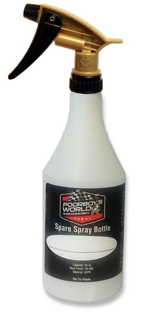HDPE fľaša s rozprašovačom prírodnej farby s hrdlom 28-400. Fľaštička s rozprašovačom je určená na spárovanie so spúšťacím rozprašovačom alebo uzáverom a uľahčuje riedenie pri aplikácii produktov Poorboy's World, najmä pri nákupe vo veľkých objemových baleniach. Táto fľaša s objemom 710 ml má vysoké zúžené hrdlo, ktoré uľahčuje uchopenie pri práci s rozprašovačom. Polyetylén s vysokou hustotou (HDPE) má vysokú pevnosť v ťahu, dobrú odolnosť voči chemikáliám, dobrú odolnosť proti nárazu, je vysoko tuhý a vysoko odolný proti poškriabaniu. Prirodzená farba Poorboy's World Spare Spray Bottle umožňuje ľahko zistiť, koľko produktu je vo vnútri. Okrem toho je strana fľaštičky označená a očíslovaná v unciach aj mililitroch s pomermi riedenia v rozmedzí od 1:1 do 10:1.
