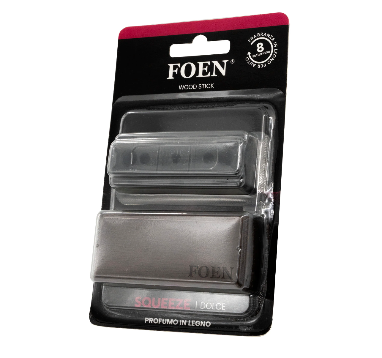 Dodajte svojmu autu jedinečný charakter s Foen Wood Stick Squeeze – elegantným osviežovačom vzduchu ručne vyrobeným z pravého orechového dreva. Stačí ho vložiť do ventilačnej mriežky a každý moment na ceste sa premení na nezabudnuteľný zážitok s ovocno-citrusovou vôňou, ktorá premení každú cestu na explóziu tropickej sviežosti – iskrivú a energizujúcu. Táto varianta je esenciou ľahkosti: živá zmes citrusov a sladkého ovocia, obohatená o aromatické tóny, ktoré prebúdzajú zmysly a dodávajú pocit radosti a sviežosti. Foen Wood Stick môže uvoľňovať intenzívnu vôňu až osem týždňov. Je vyrobený bez použitia plastov alebo chemikálií, čím spája vysokú kvalitu s ohľadom na životné prostredie. Minimalistický dizajn sa elegantne hodí do každého interiéru auta, zatiaľ čo jeho výrazná a originálna vôňa láme stereotypy a zanecháva nezameniteľný dojem. Jeho vôňa sa uvoľňuje prostredníctvom vymeniteľnej náplne - polymérnych granulátov impregnovaných starostlivo vyvinutou vôňou.